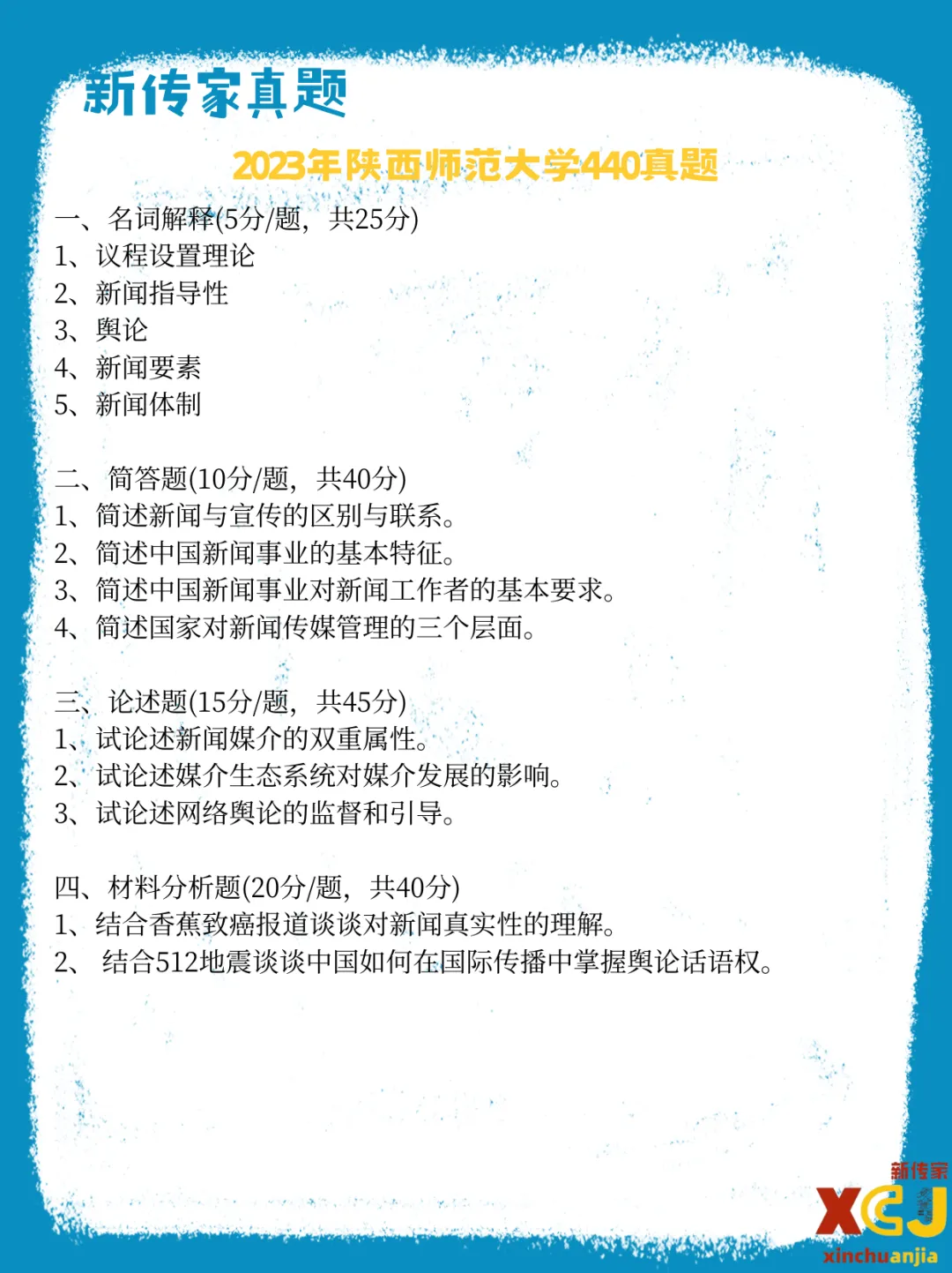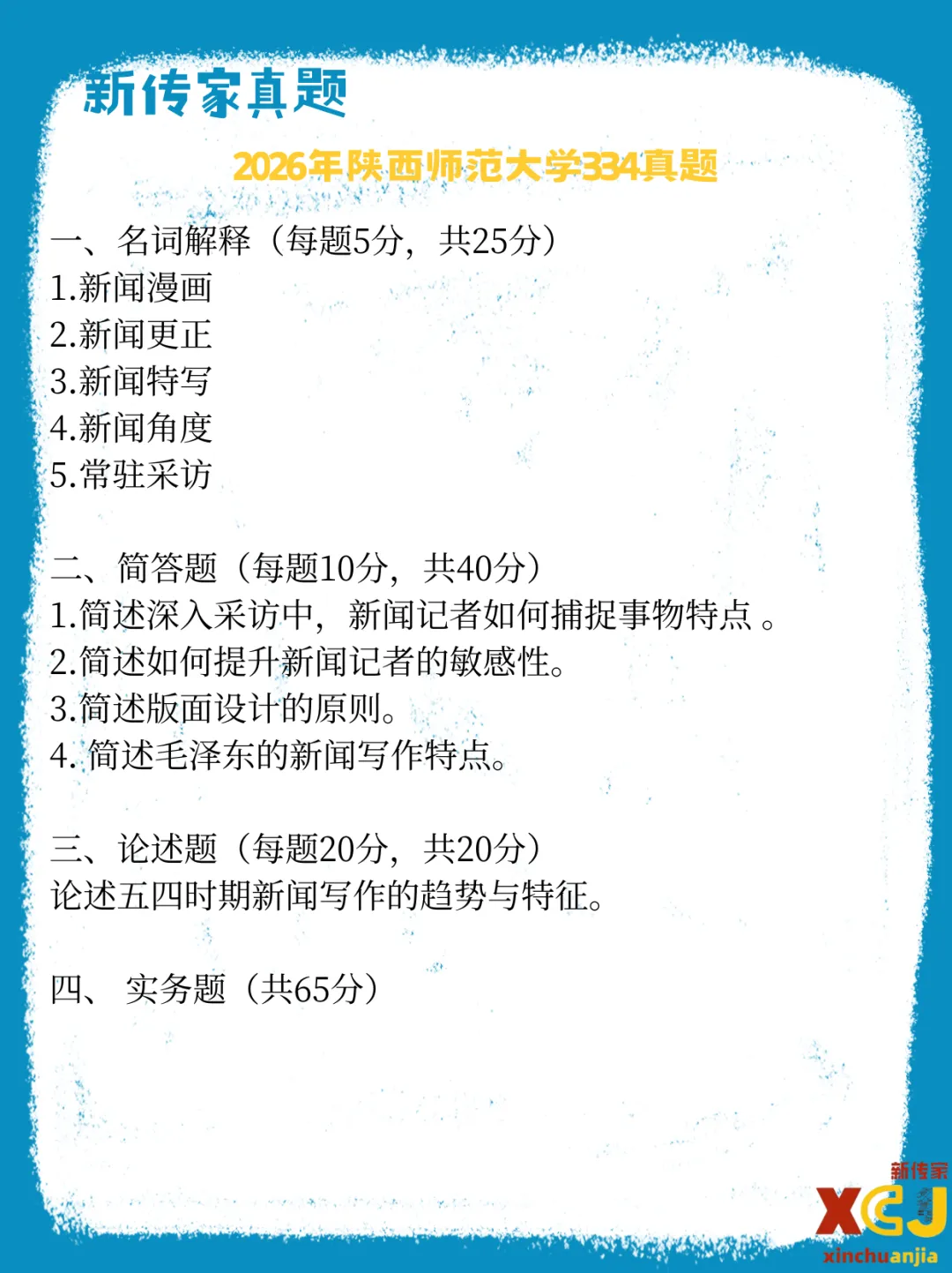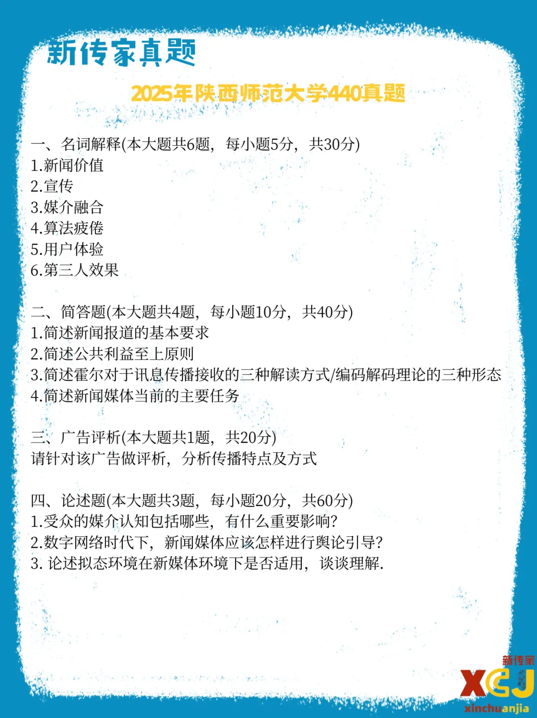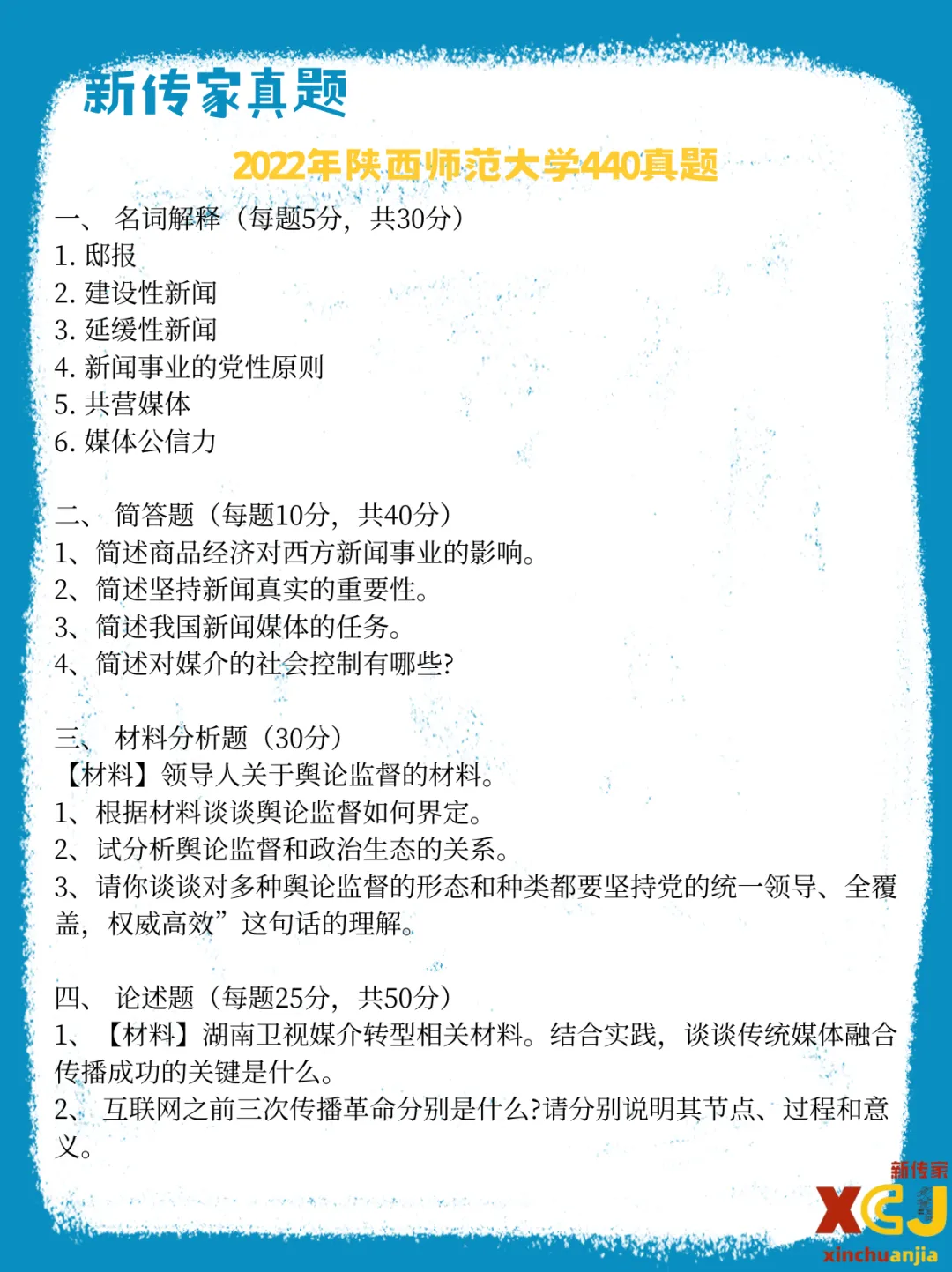【新传考研】陕西师范大学新传考研真题|2020-2026|专硕334+440|7年14份试卷