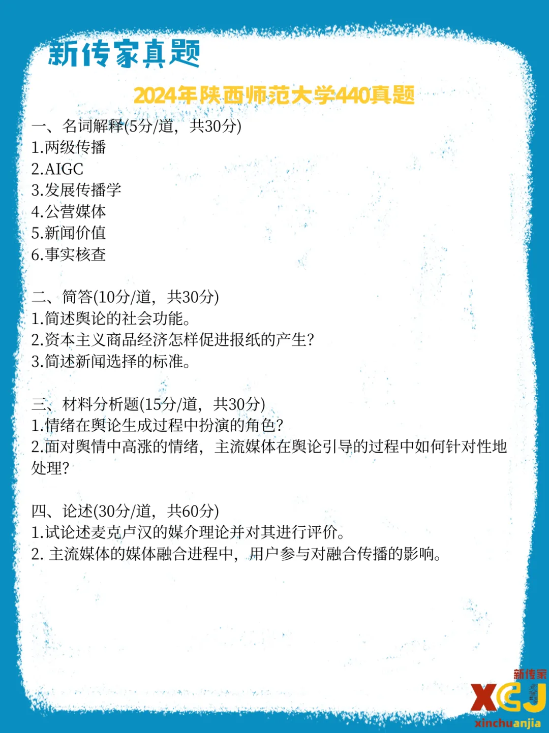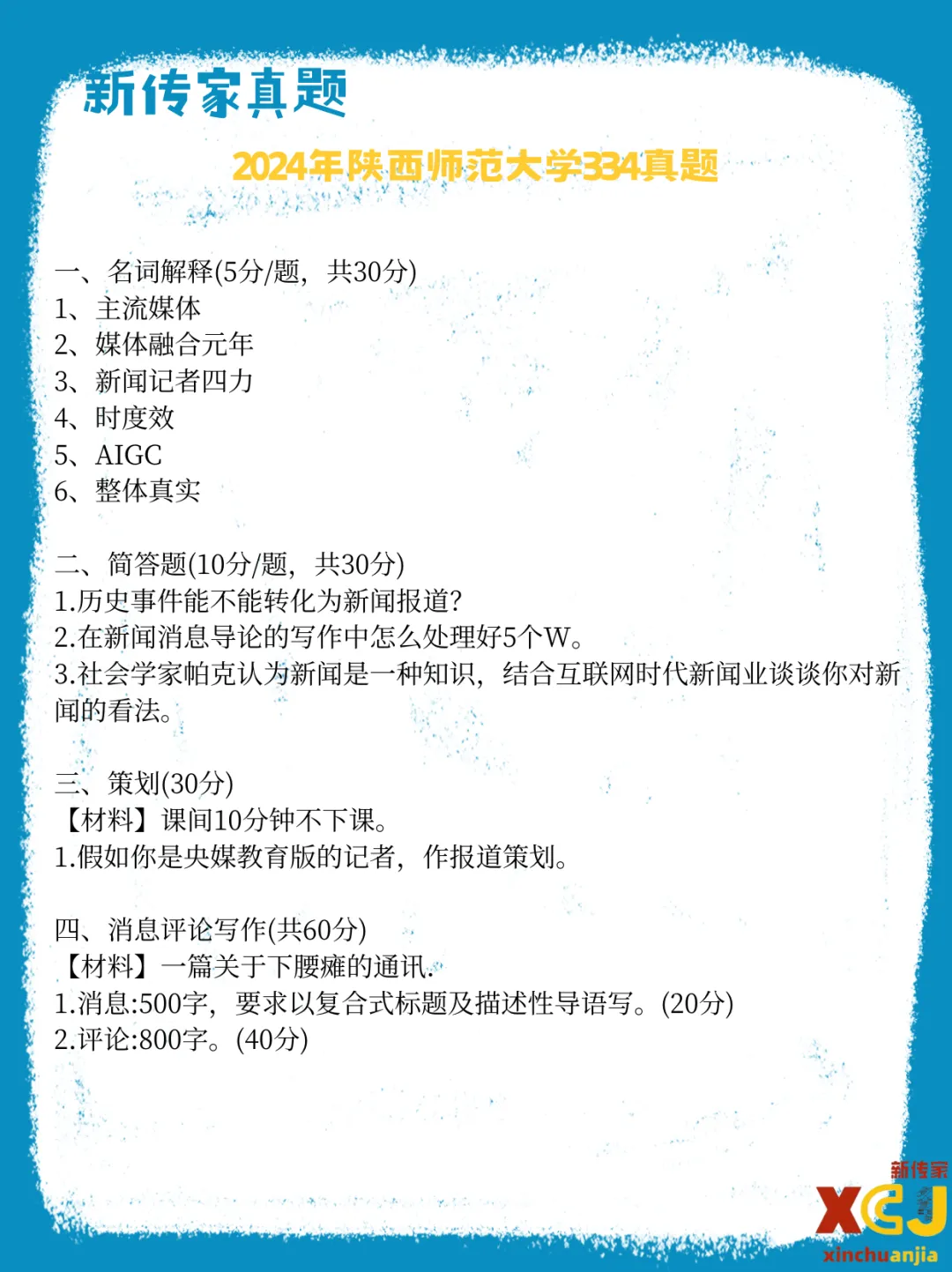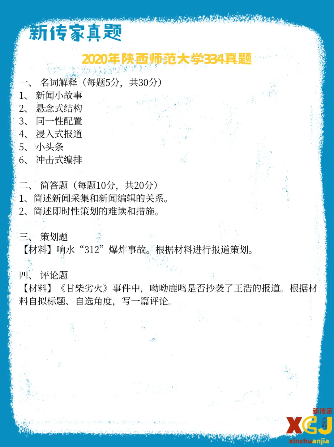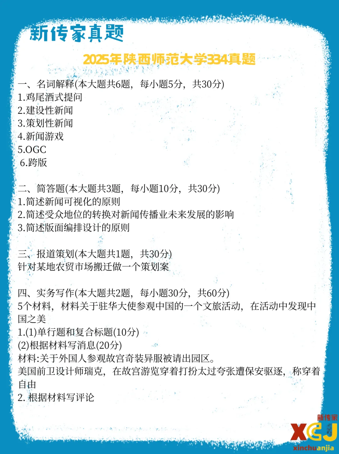 【新传考研】陕西师范大学新传考研真题|2020-2026|专硕334+440|7年14份试卷