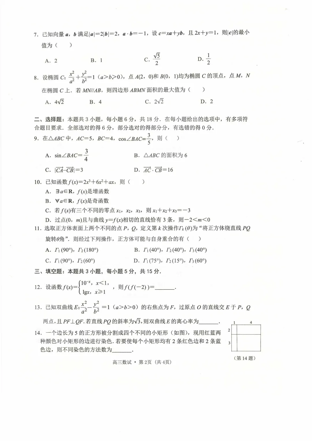 >杭州二模数学试卷4月7日考