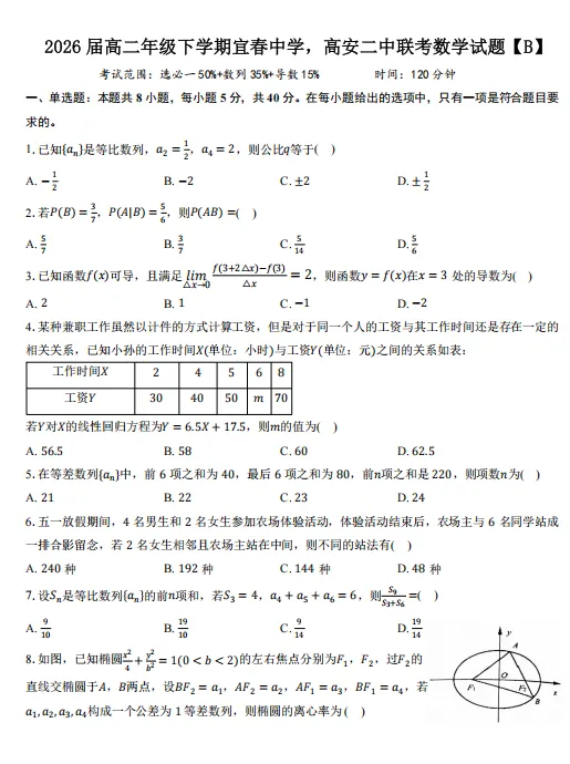 2026年4月T8联考第二次数学试卷和参考答案