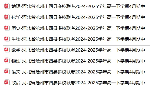 >【高一】期中丨往期试卷-河北省沧州市四县联考2024-2025学年高一下学期4月期中考试