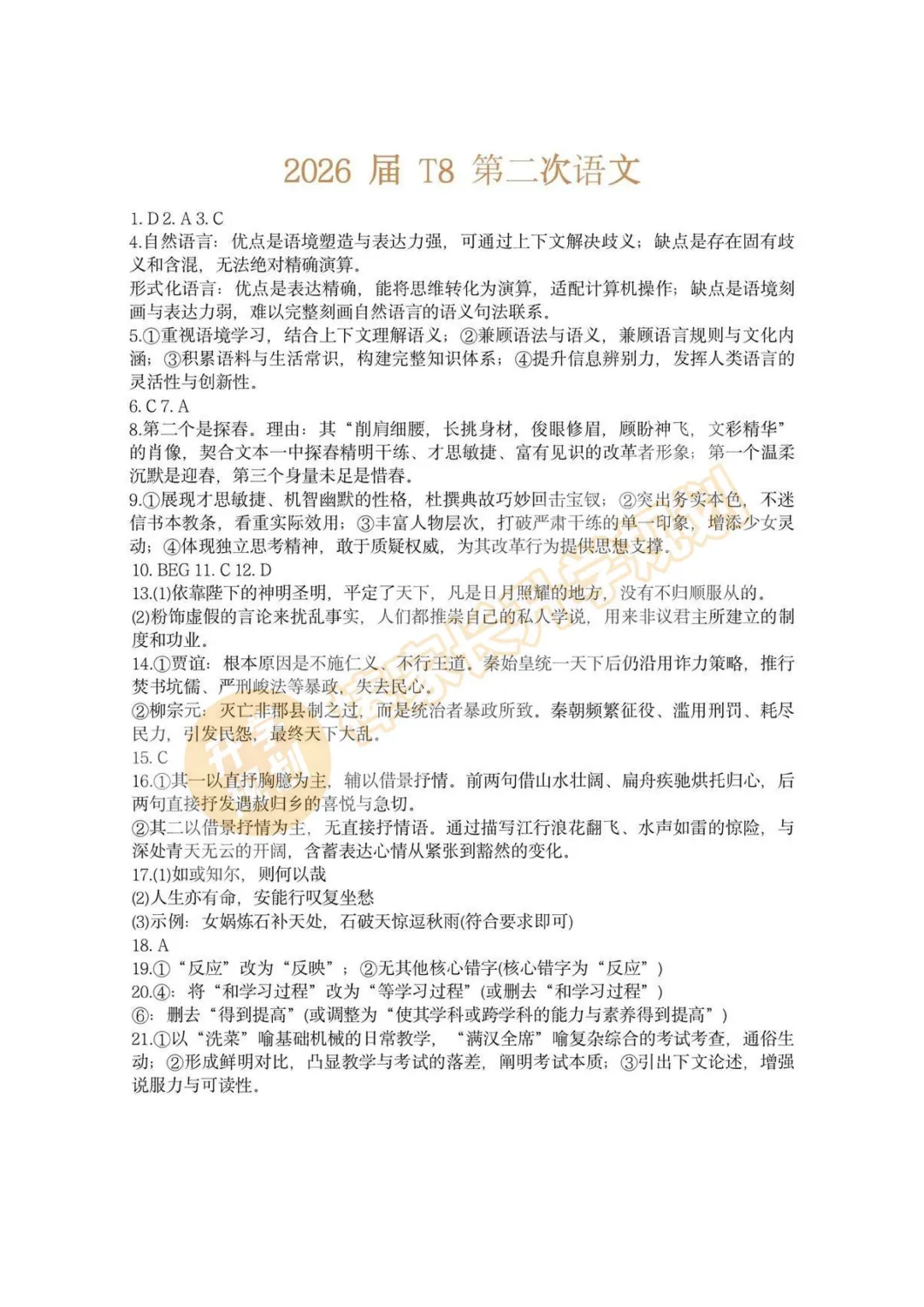 回复【八市州】,领取2026湖北高三3月八市州联考试卷答案