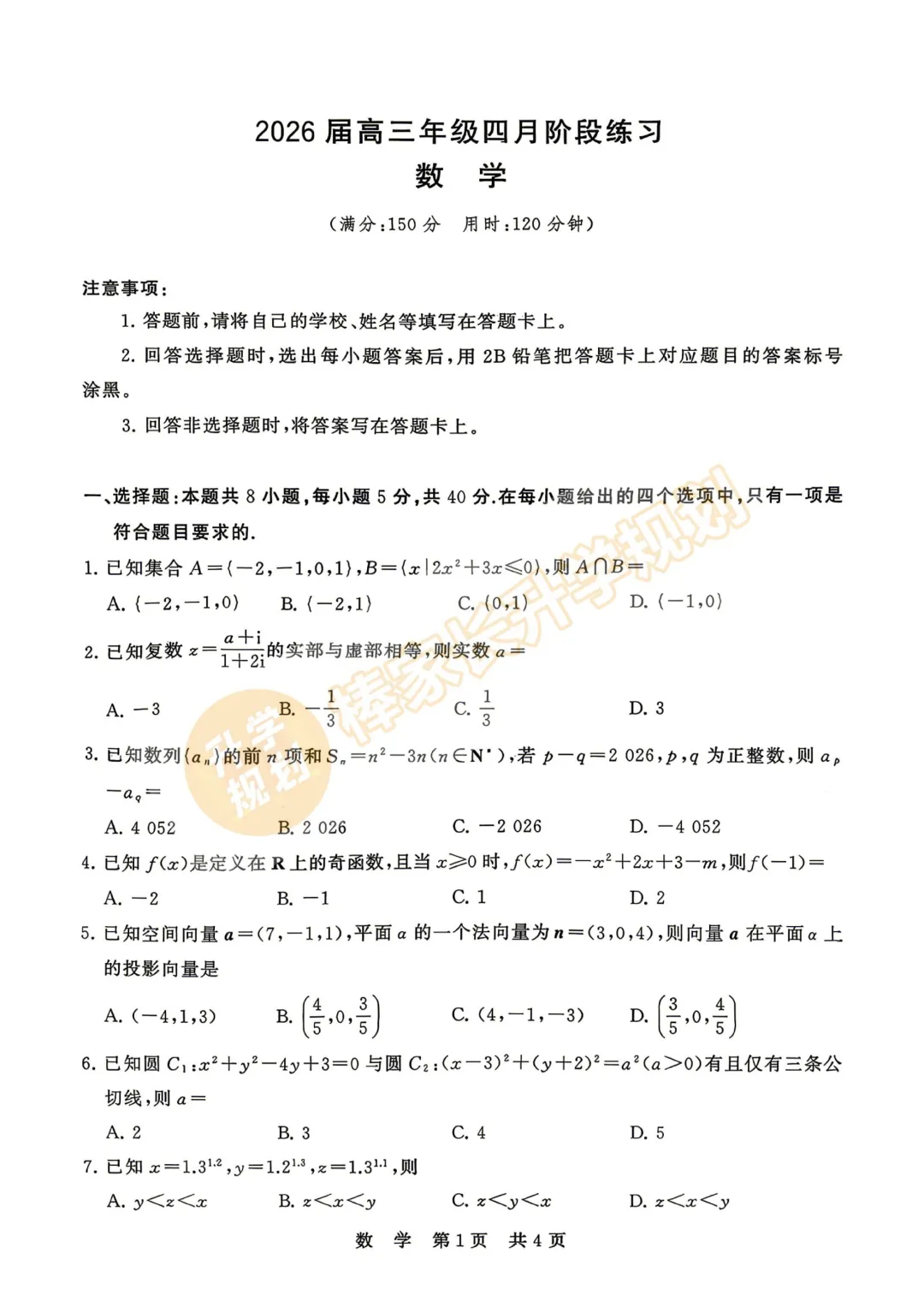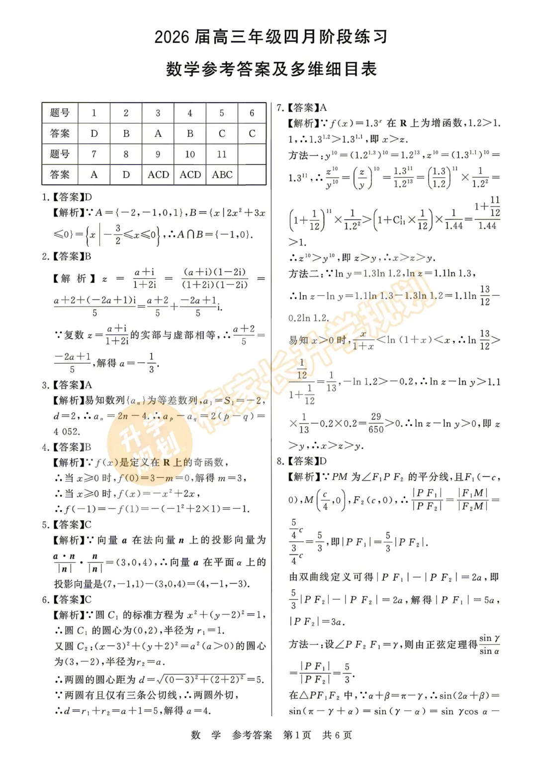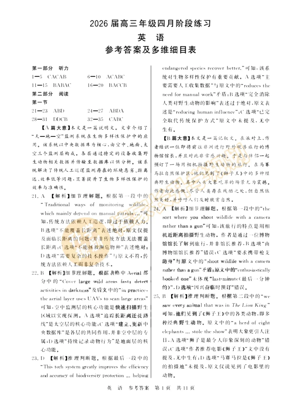 回复【黄冈】,领取2026黄冈高三3月联考试卷答案