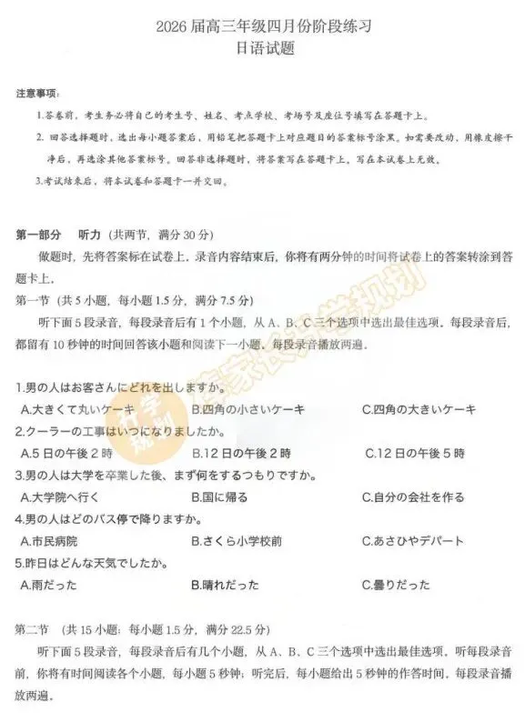 回复【十堰】,领取2026十堰高三3月联考试卷答案