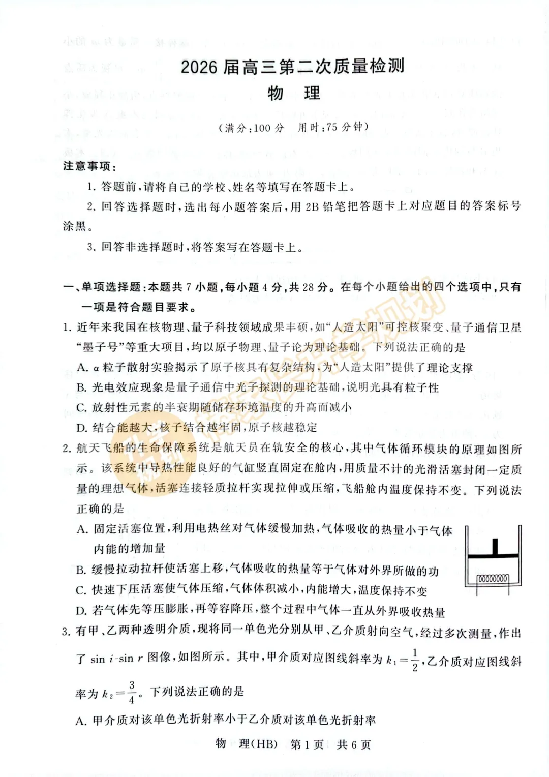 回复【楚天】,领取2026楚天协作体高三3月联考试卷答案