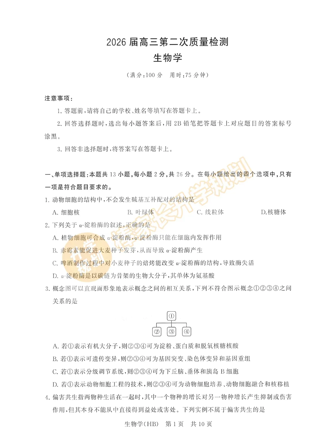 回复【随州】,领取2026随州高三3月联考试卷答案