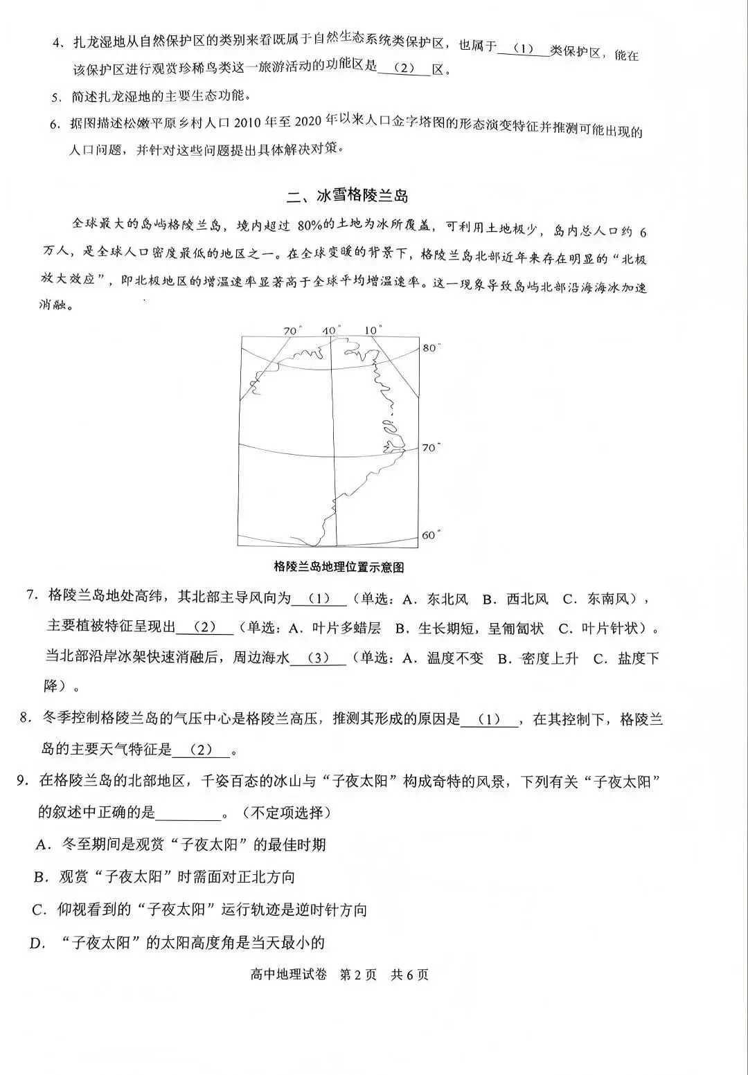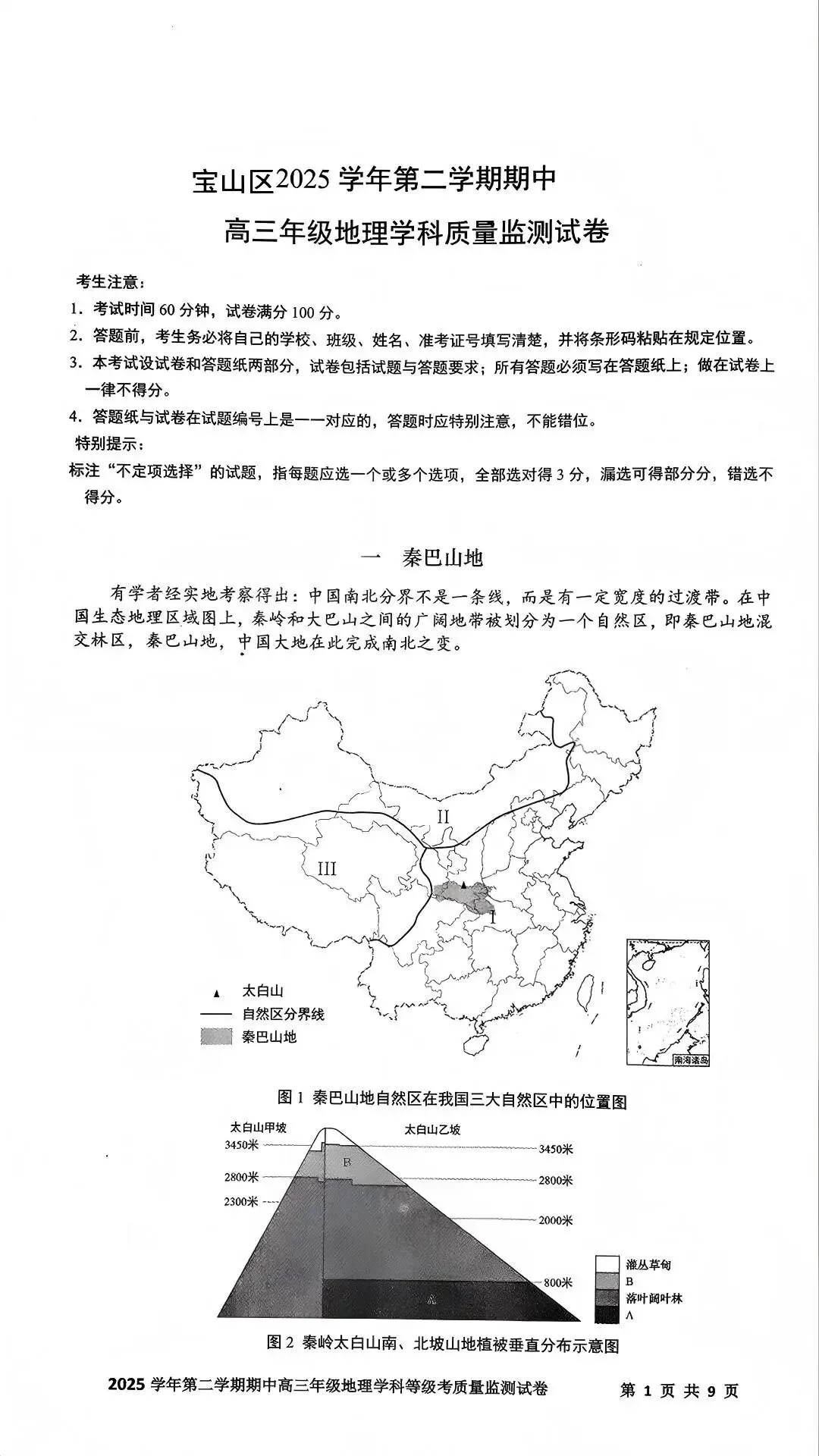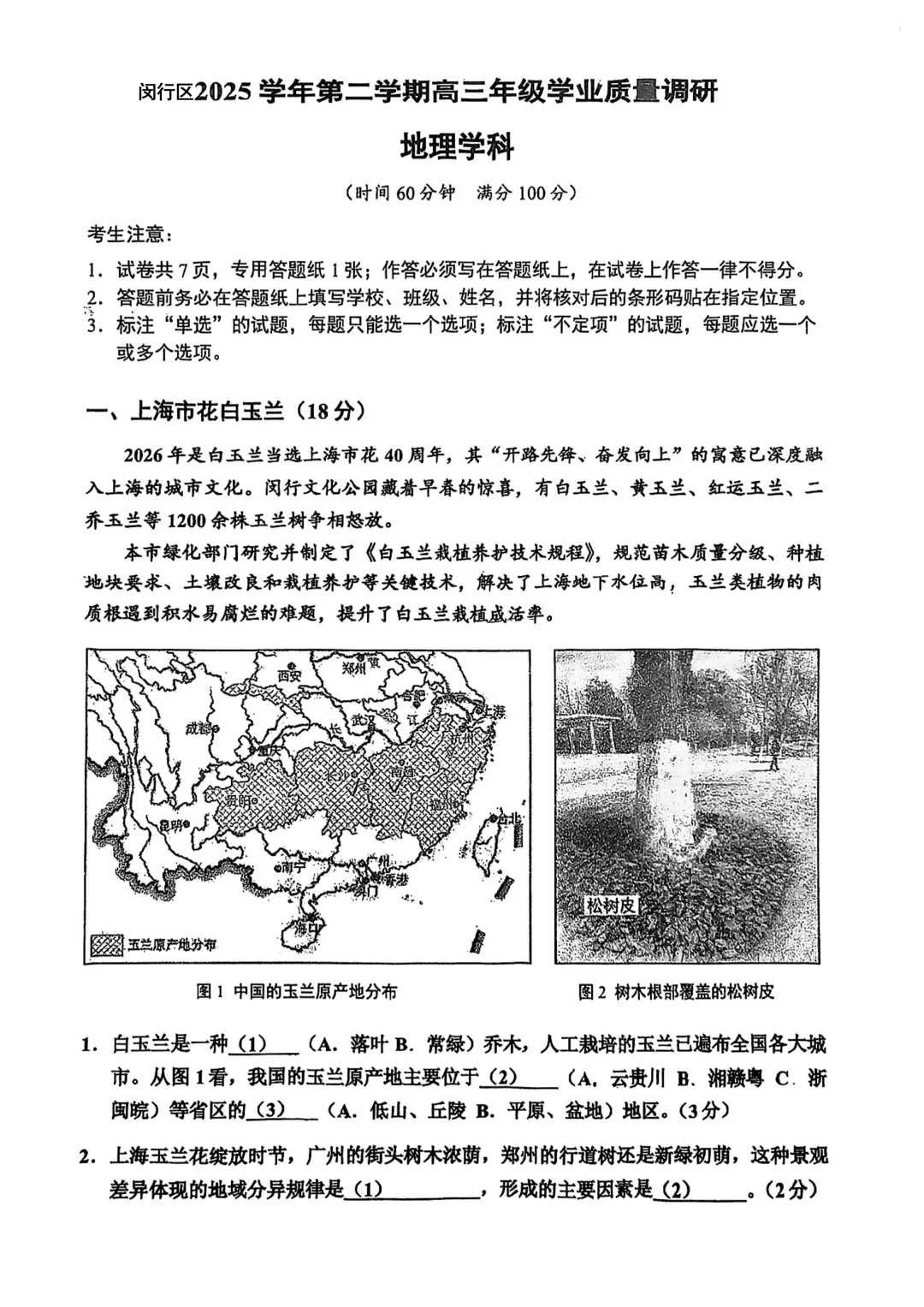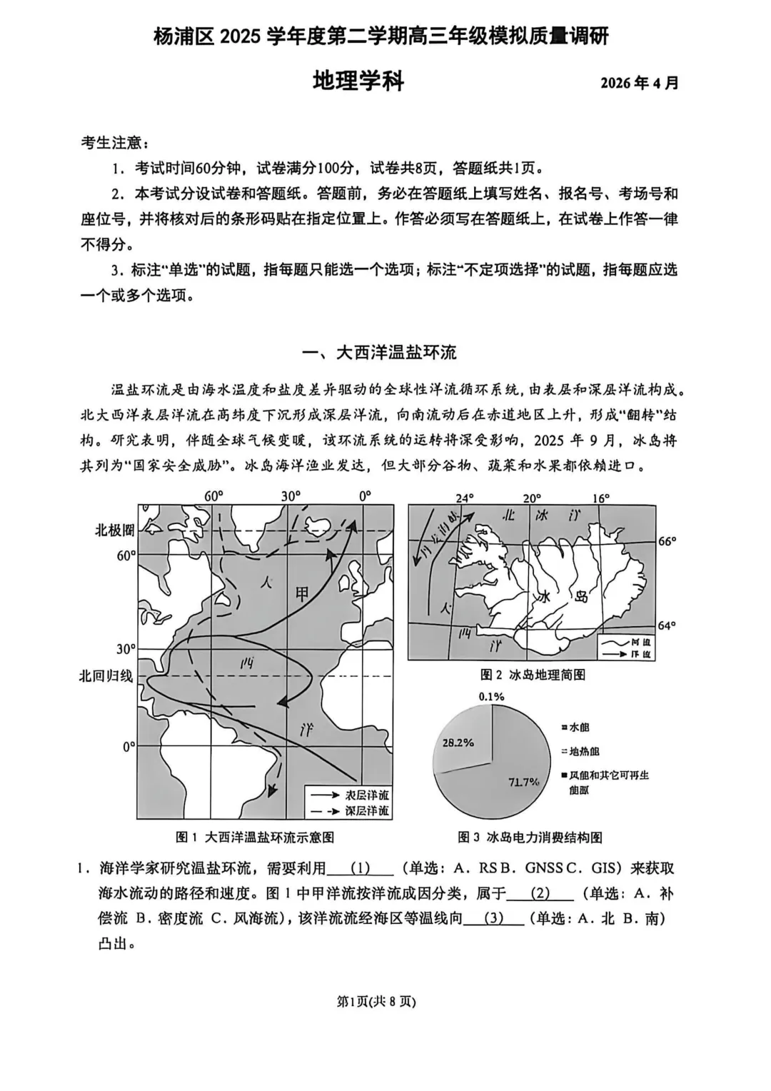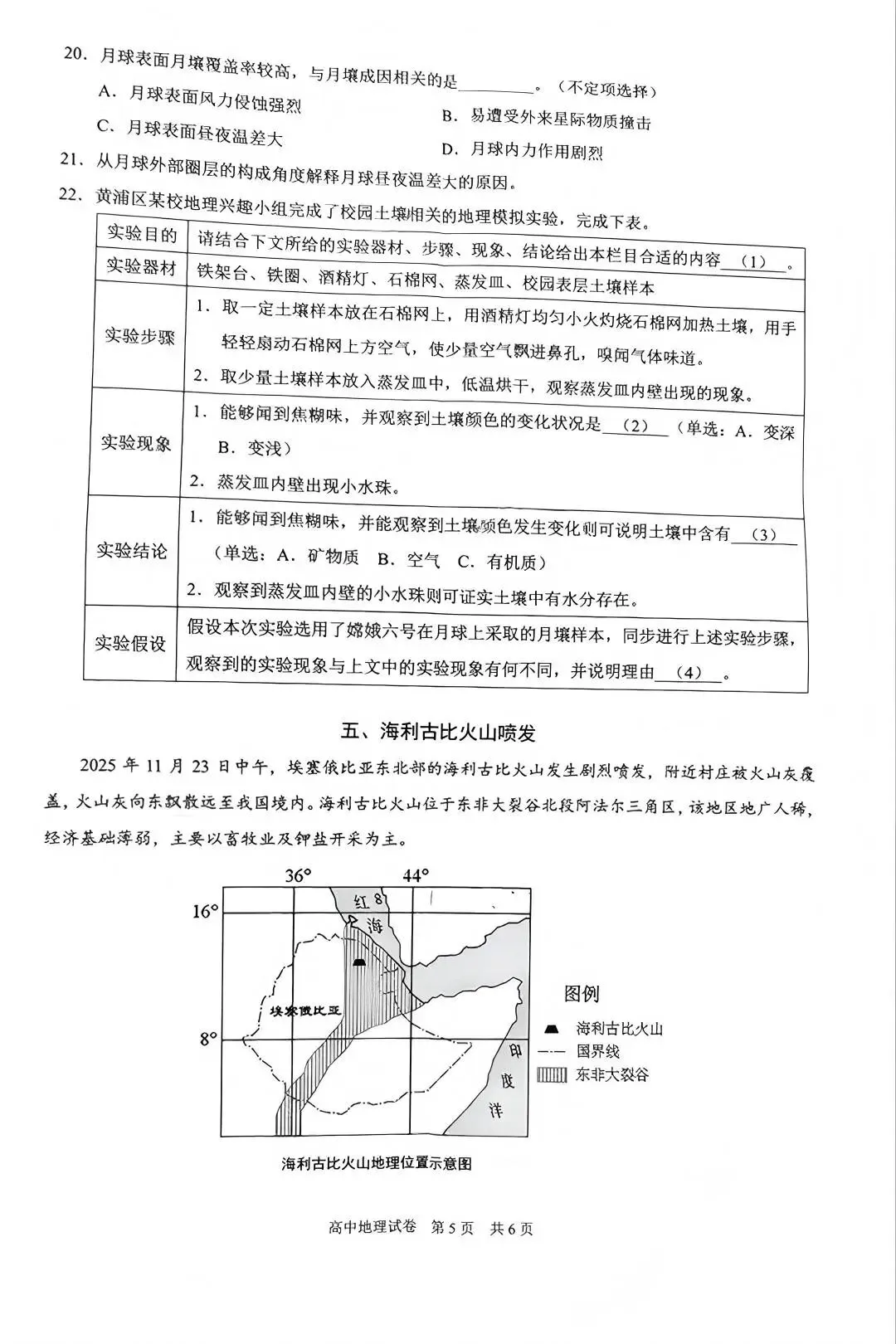 汇总:2026上海高三地理二模试卷<部分区不考>