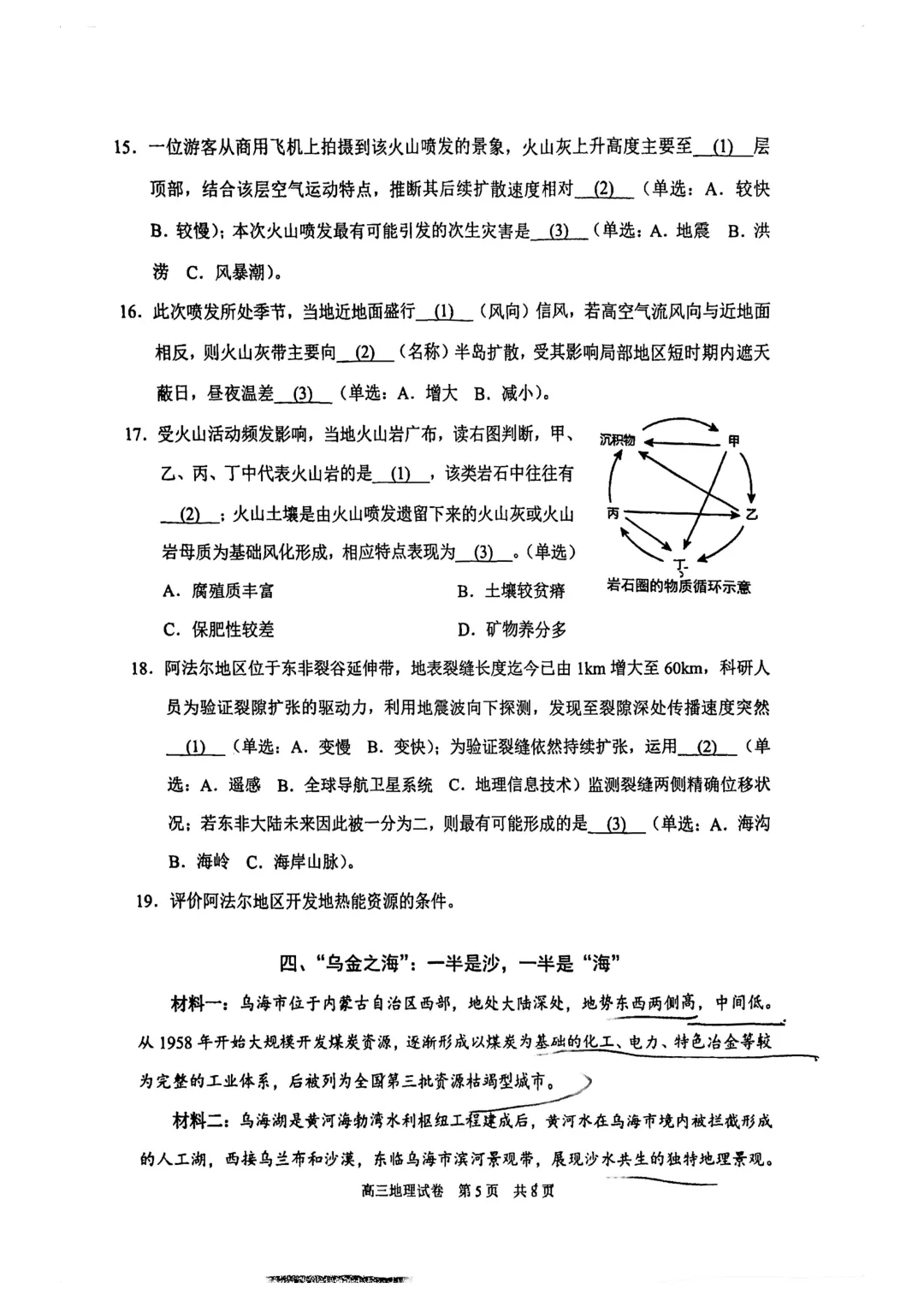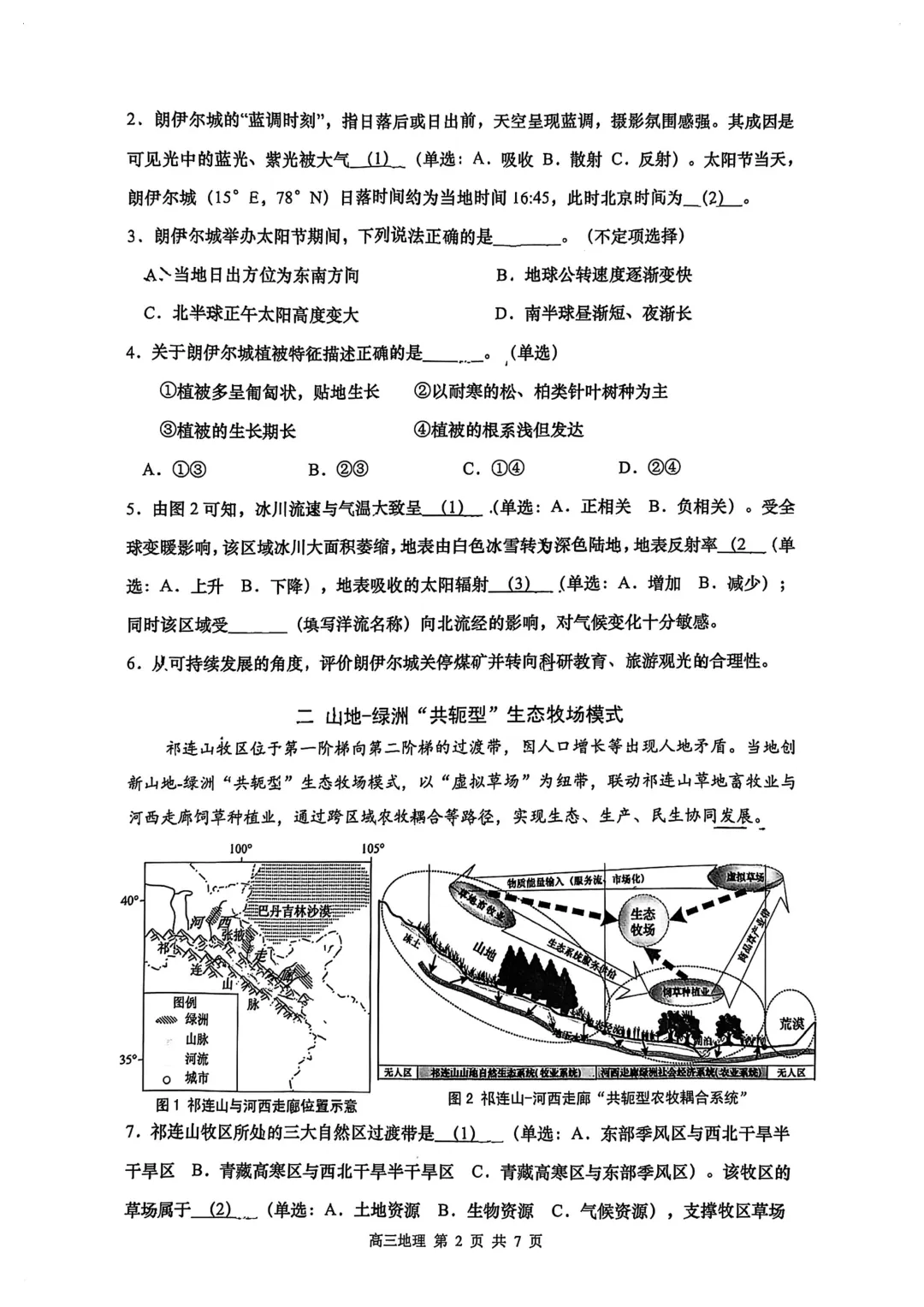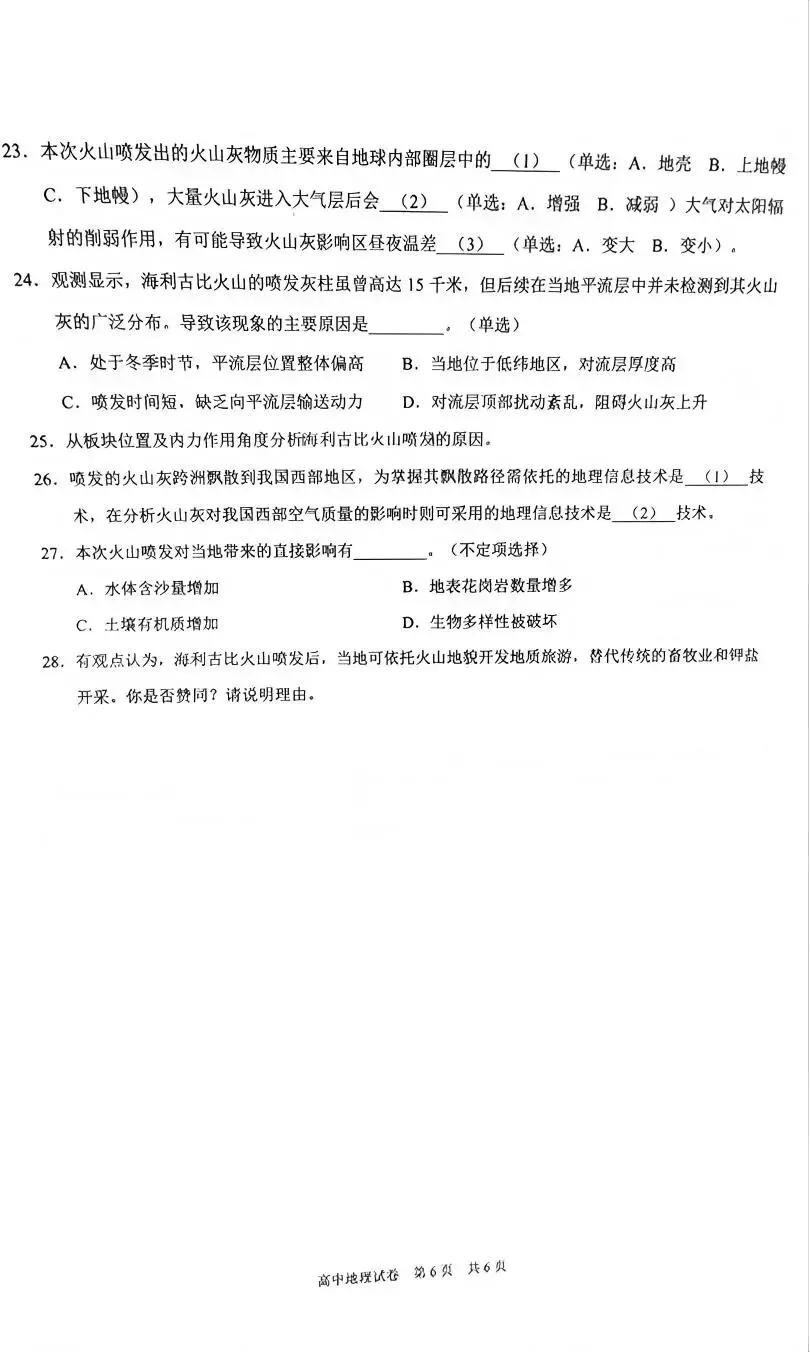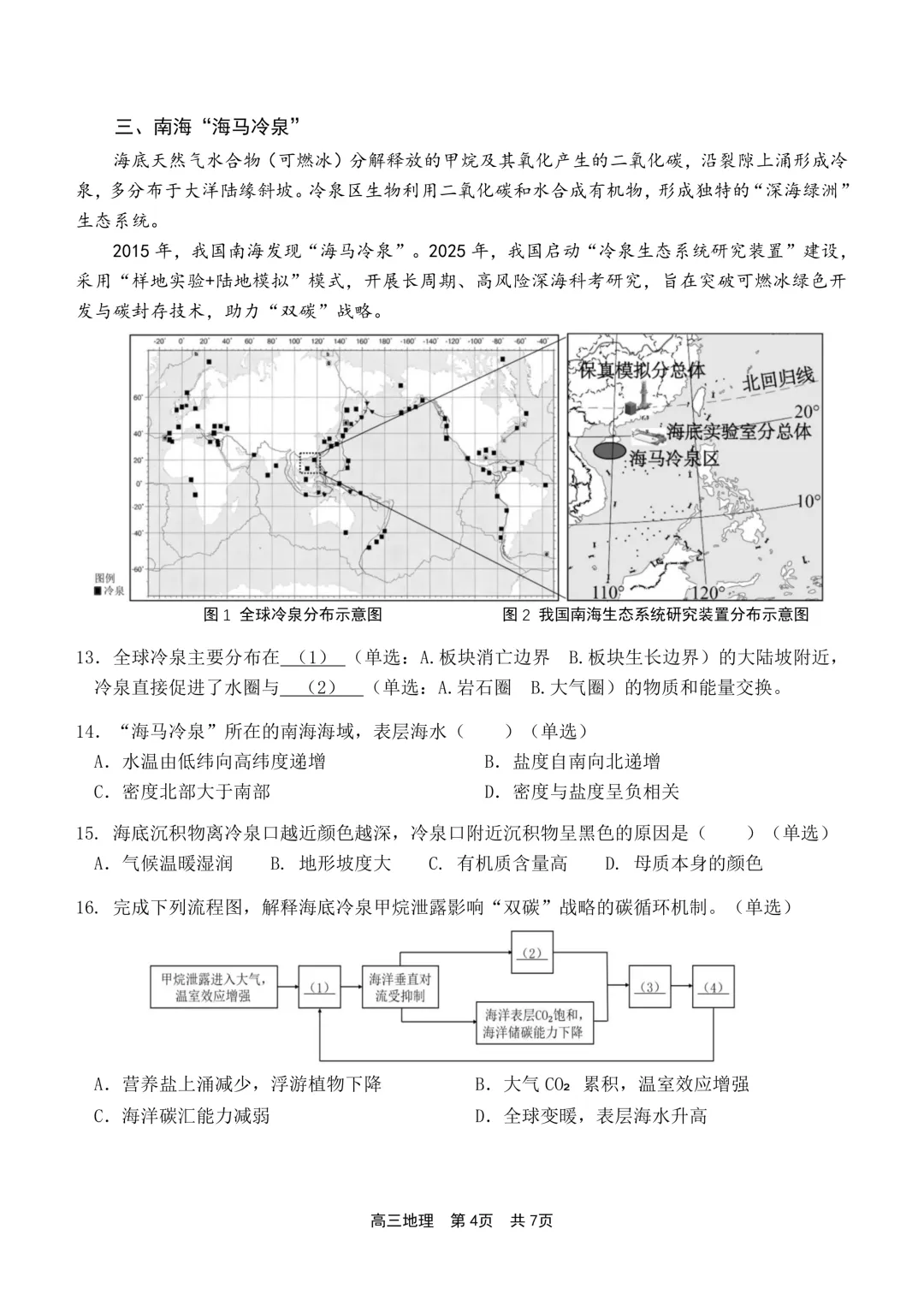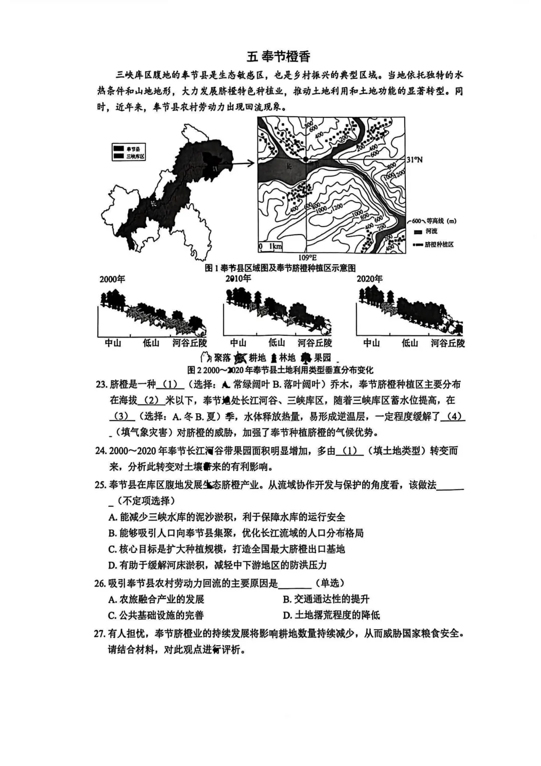 汇总:2026上海高三地理二模试卷<部分区不考>