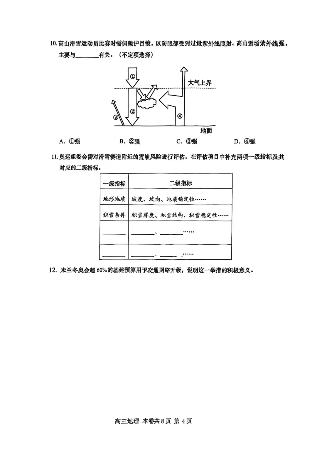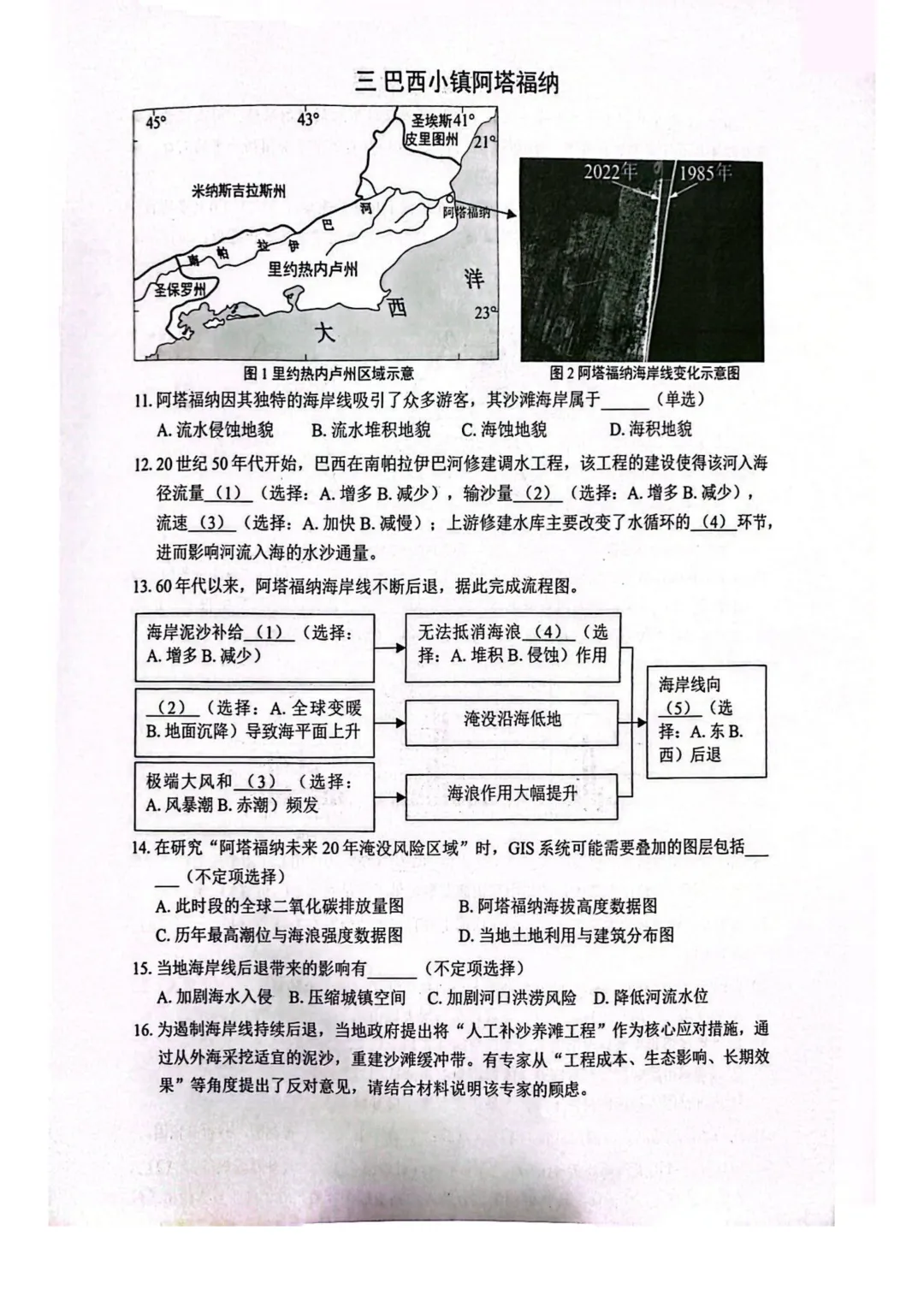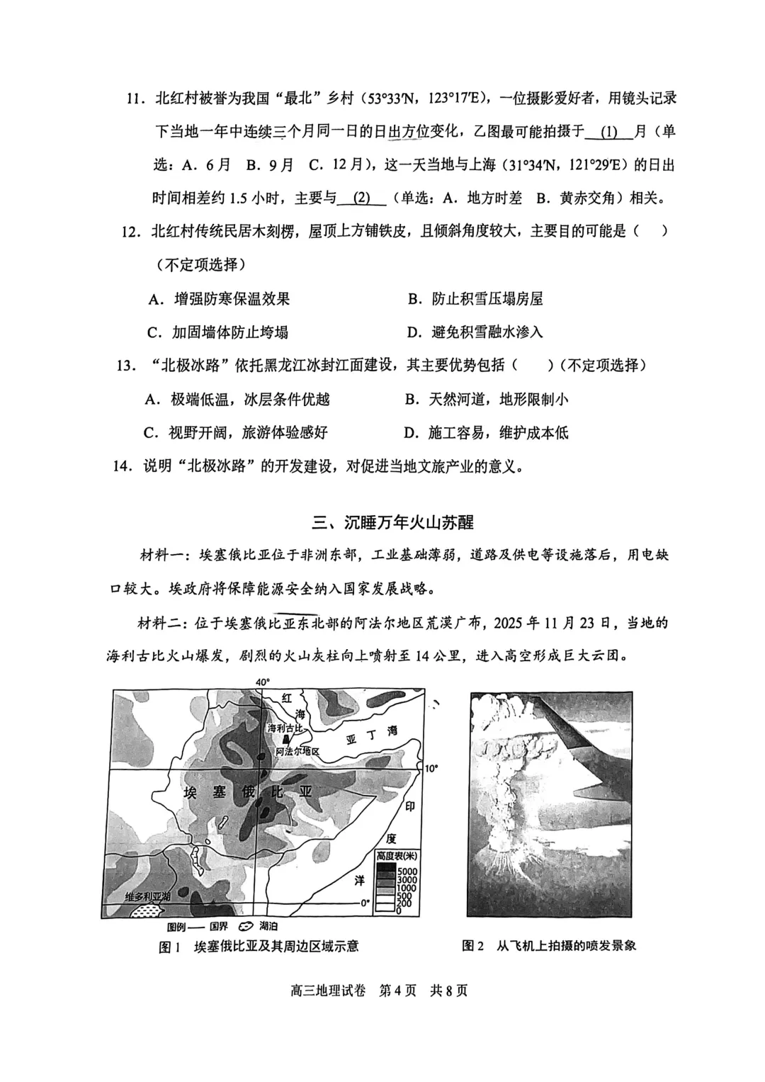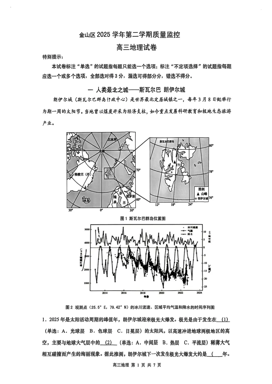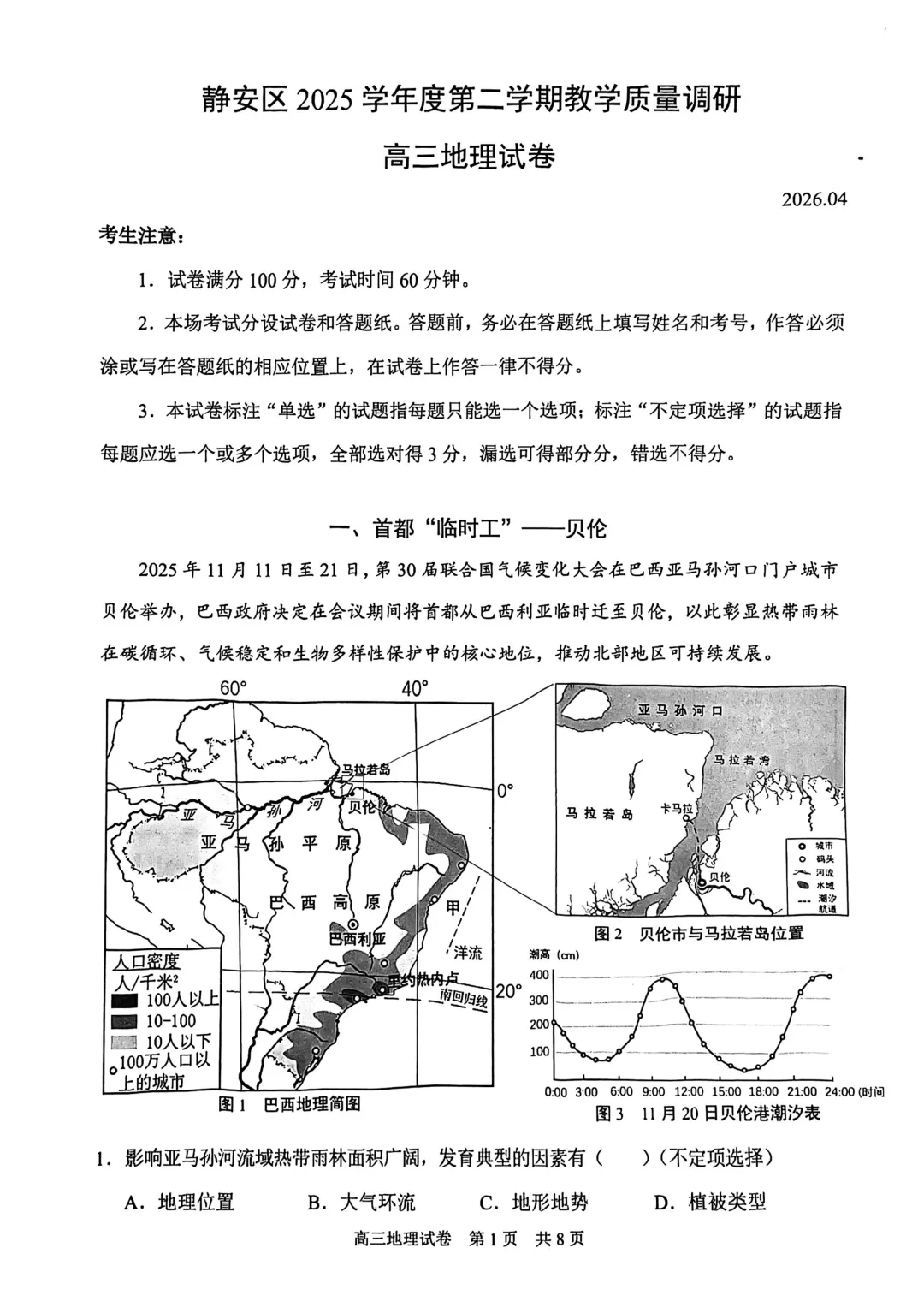 汇总:2026上海高三地理二模试卷<部分区不考>