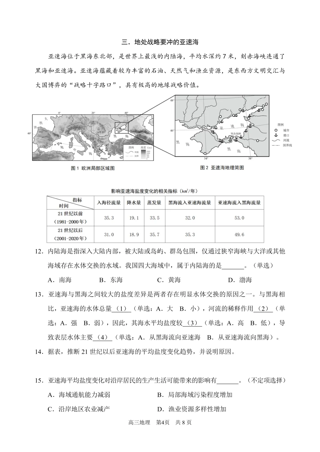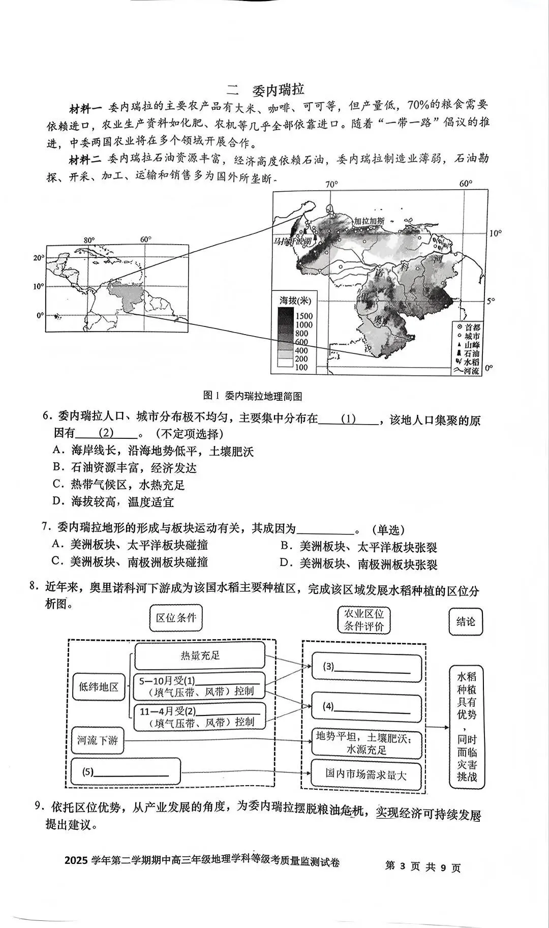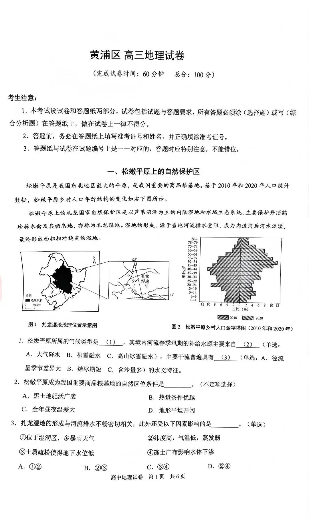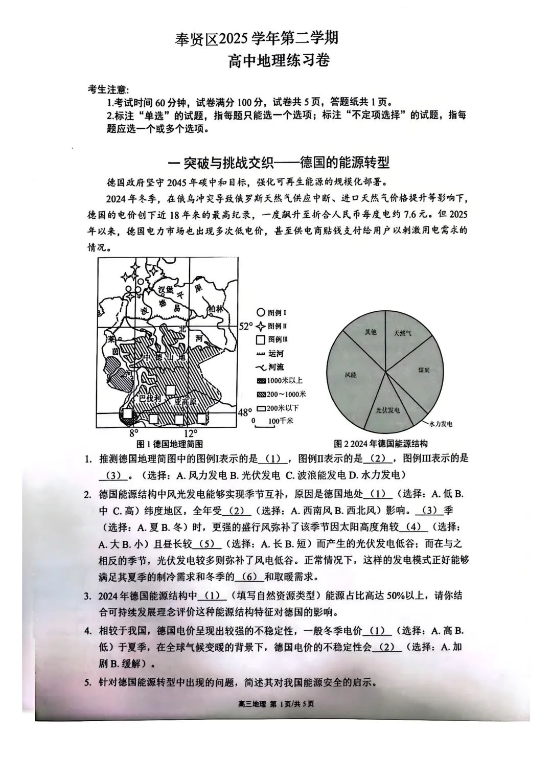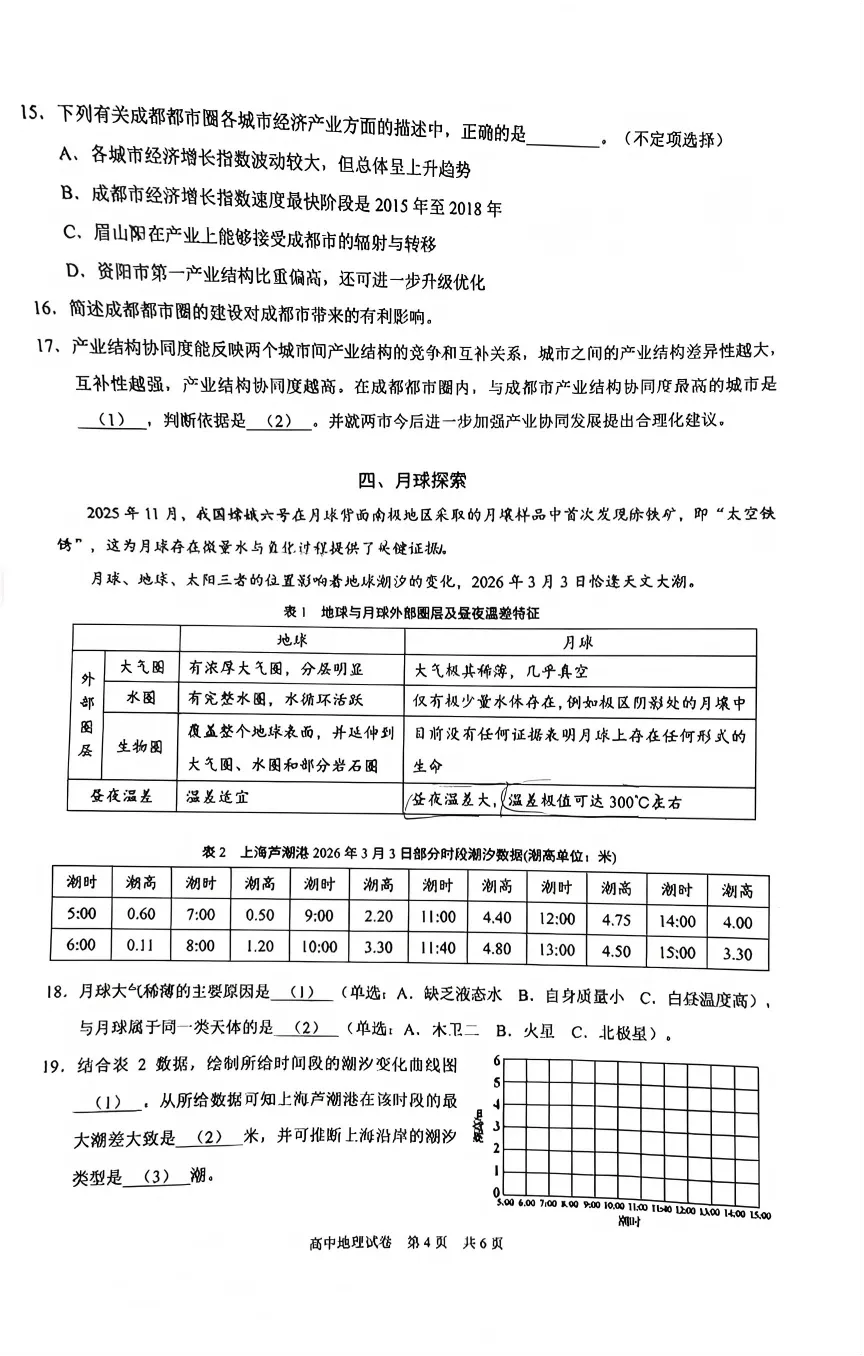 汇总:2026上海高三地理二模试卷<部分区不考>