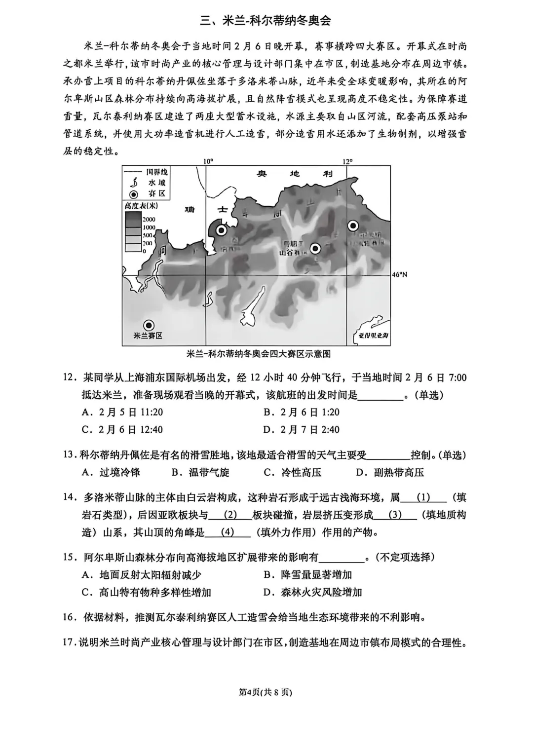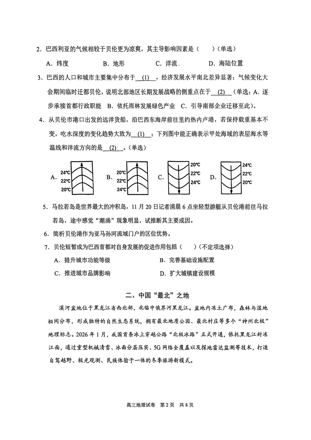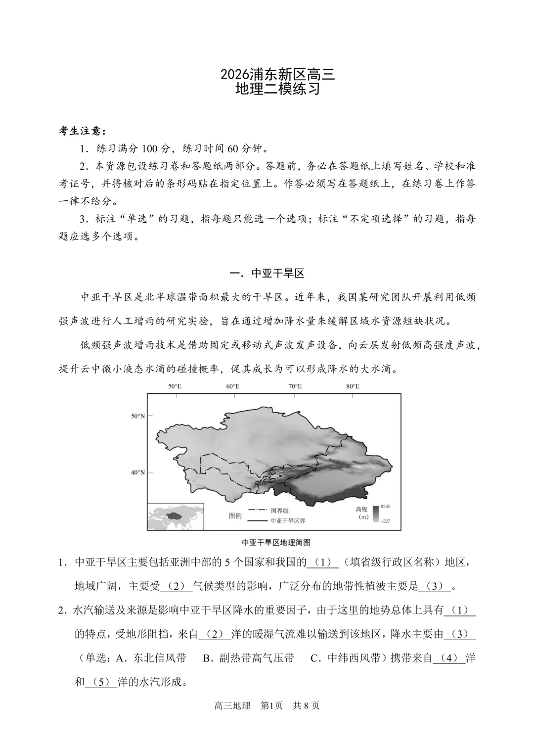 >汇总:2026上海高三地理二模试卷<部分区不考>