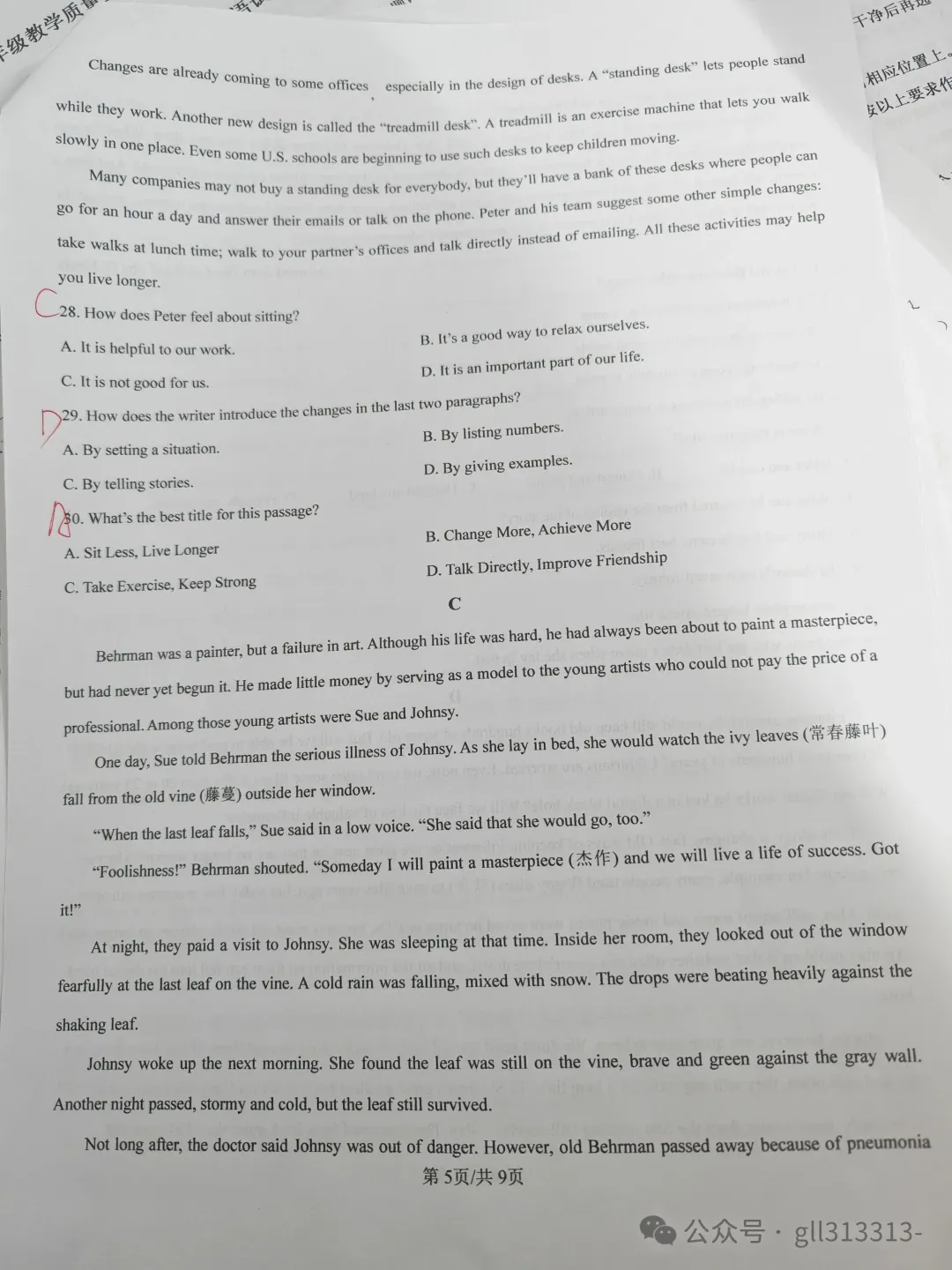 郡系期中考试语文试卷来啦