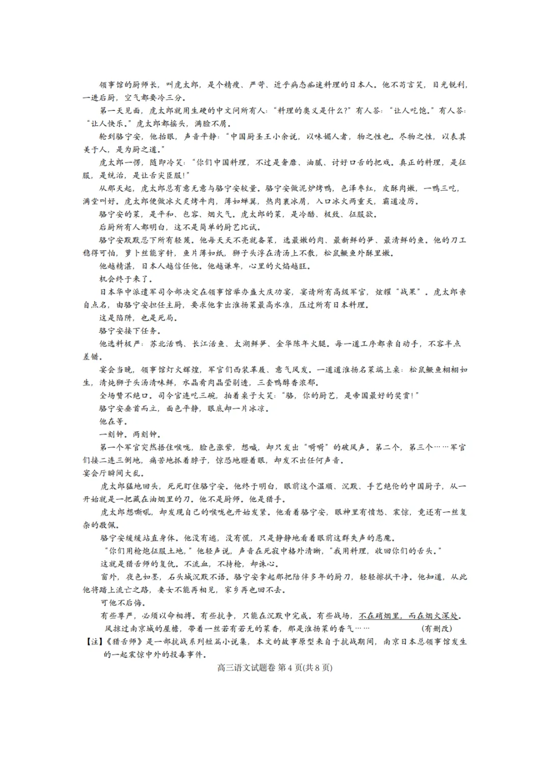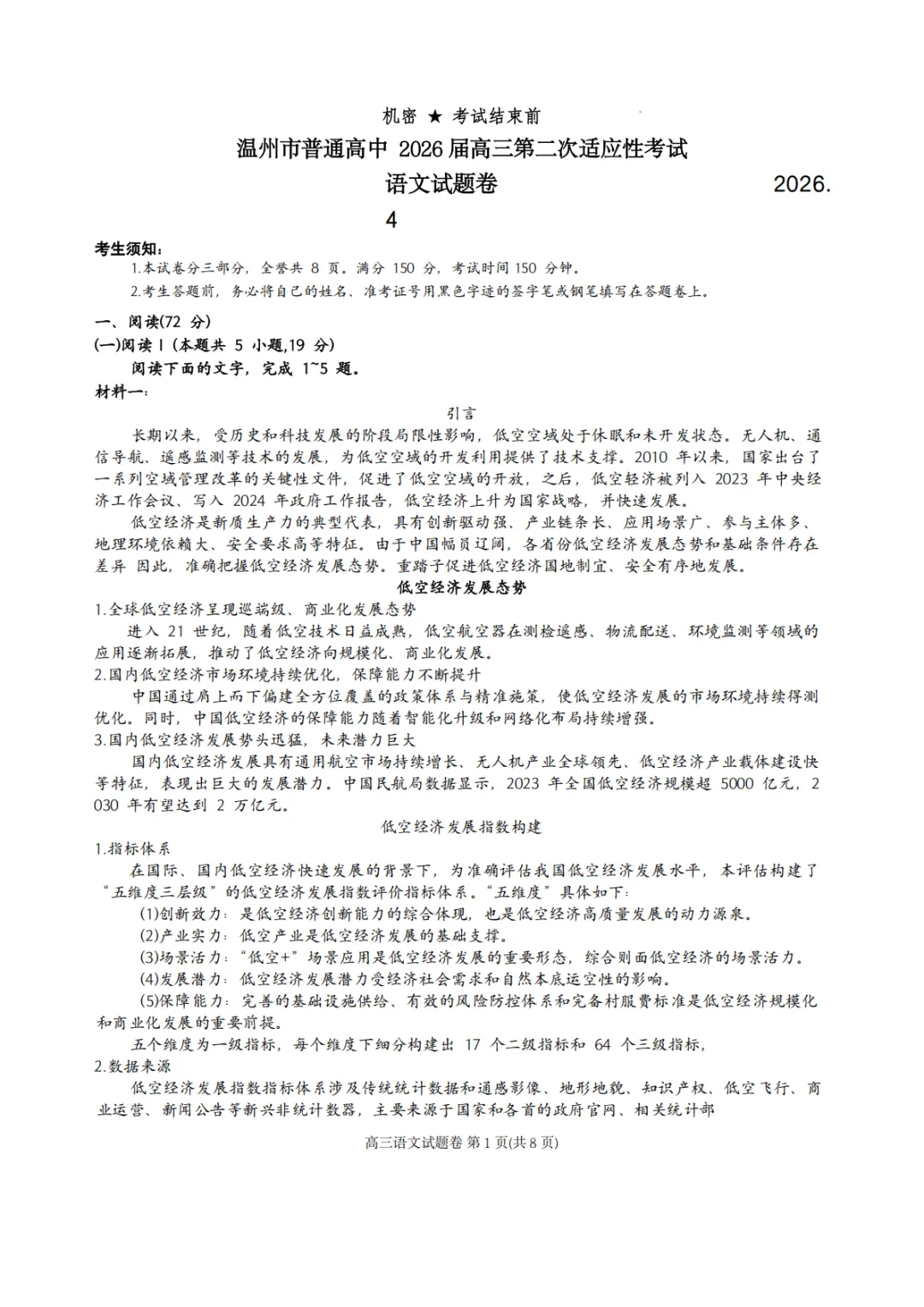 >2026年4月高三温州二模语文试卷及答案