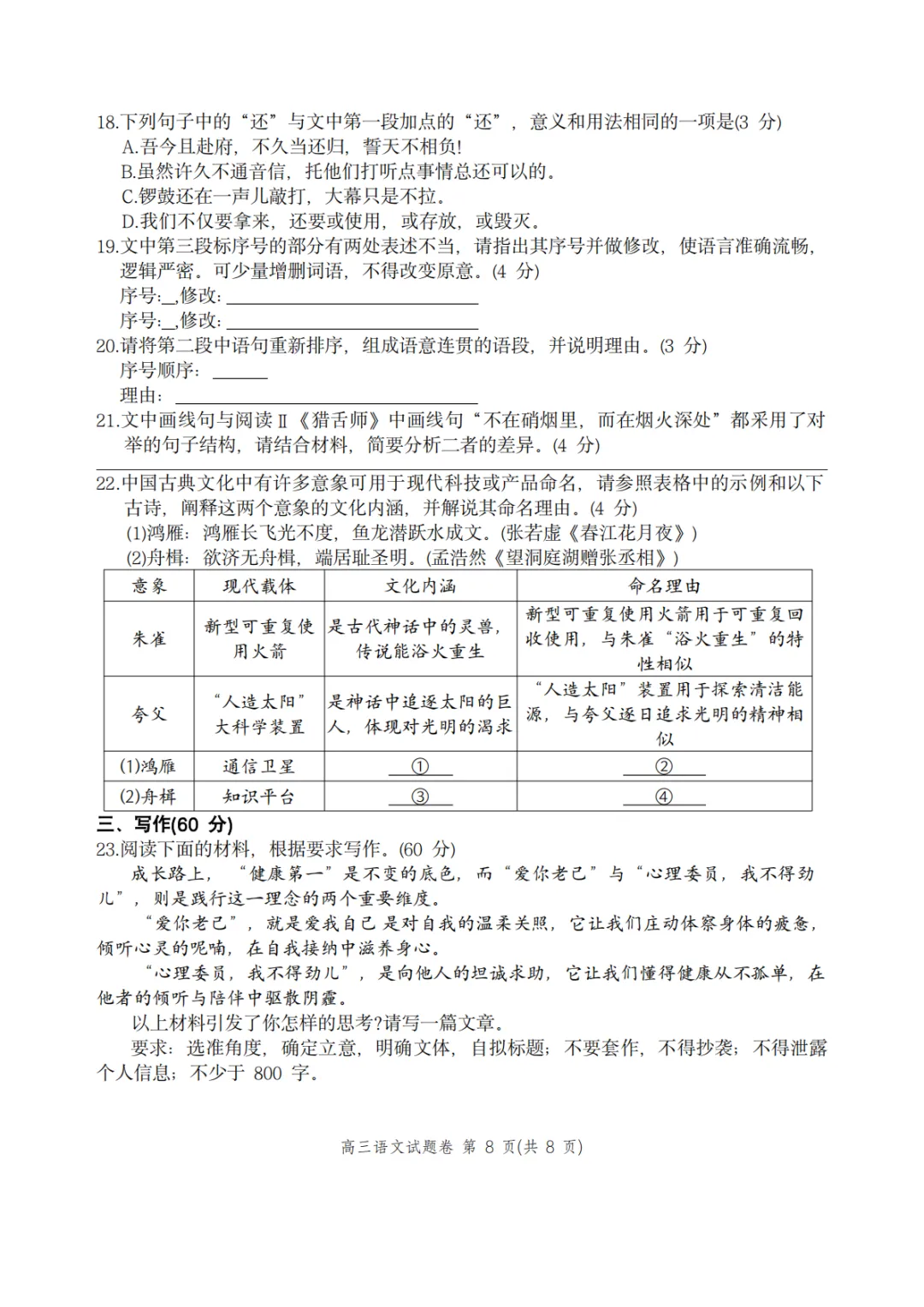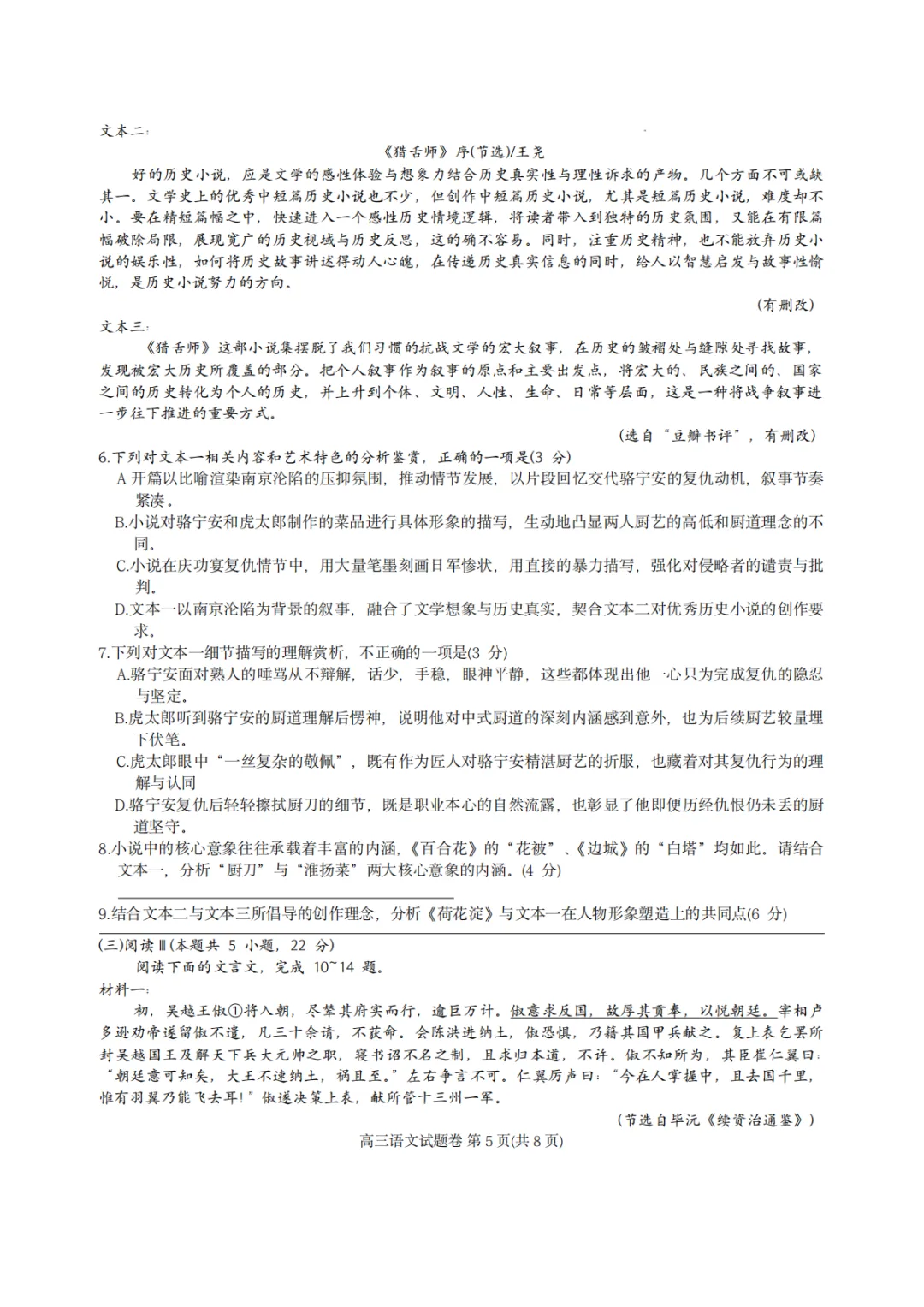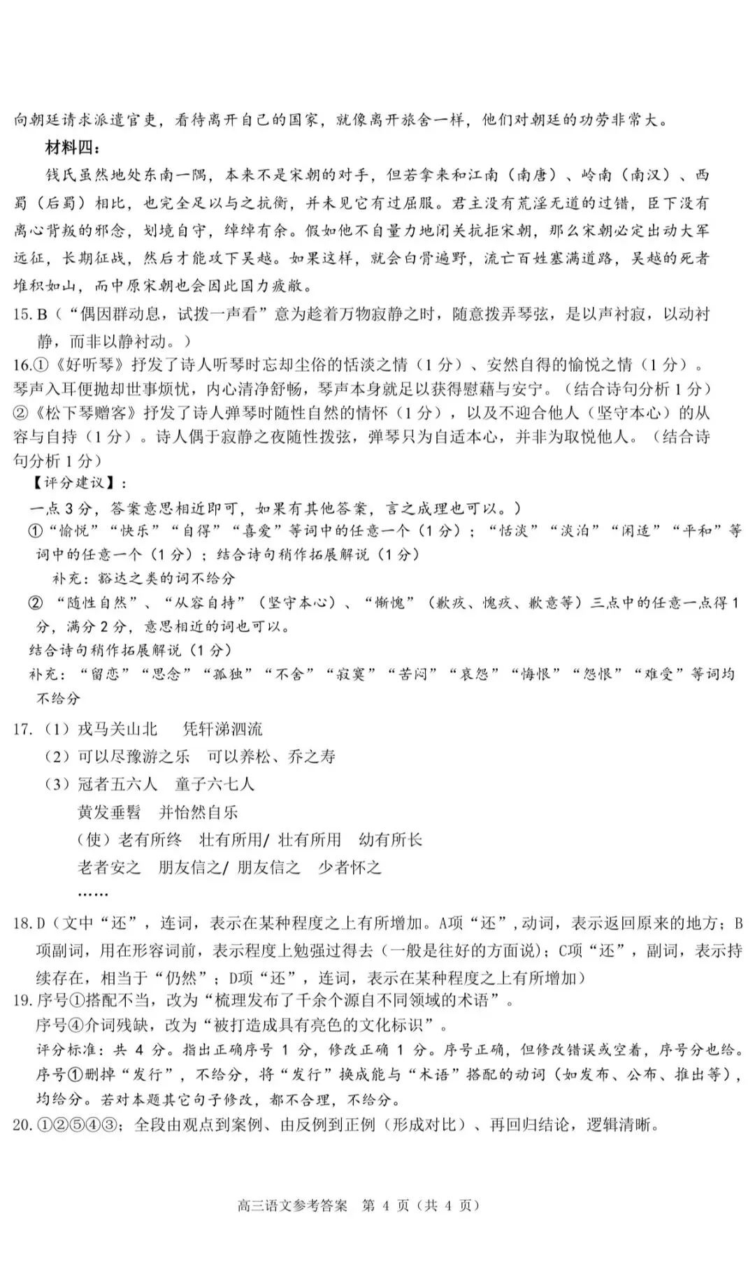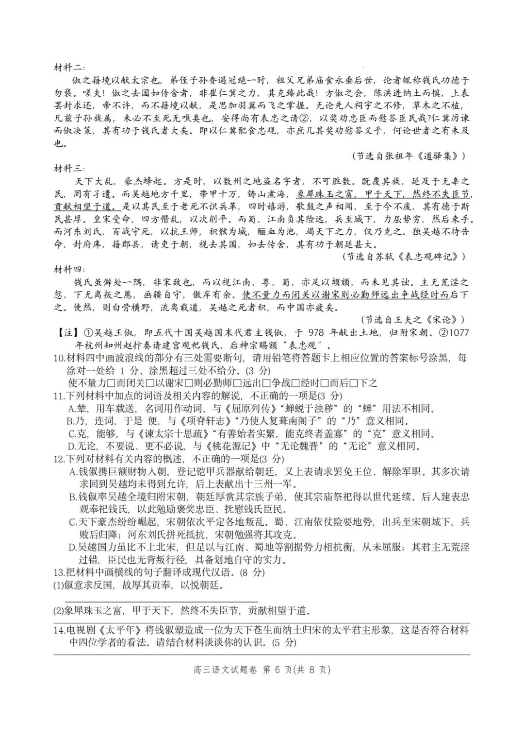 2026年4月高三温州二模语文试卷及答案