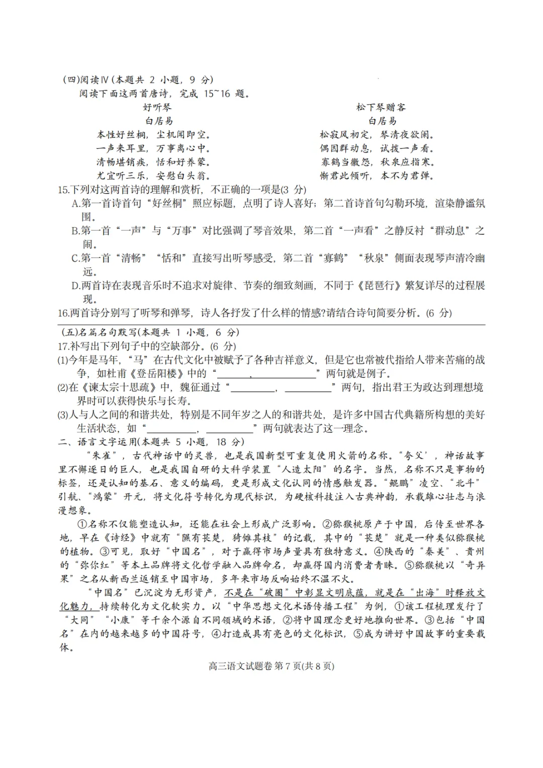 郡系期中考试语文试卷来啦