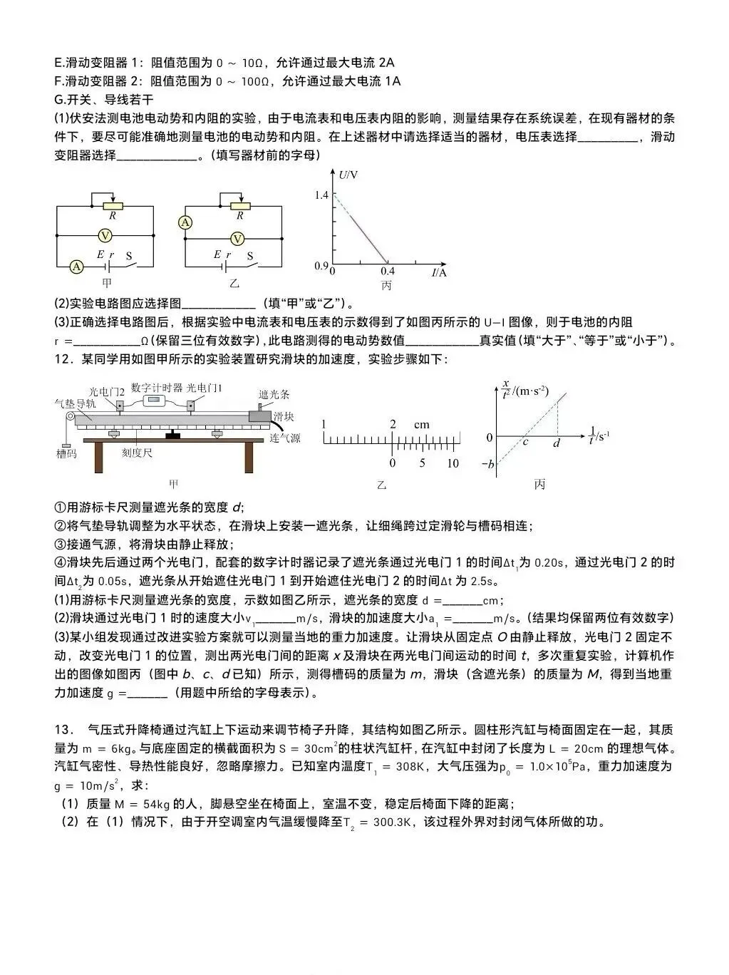 2025年广州市第十六中学高三物理专训(1)参考题目及答案冲刺广州一模训练