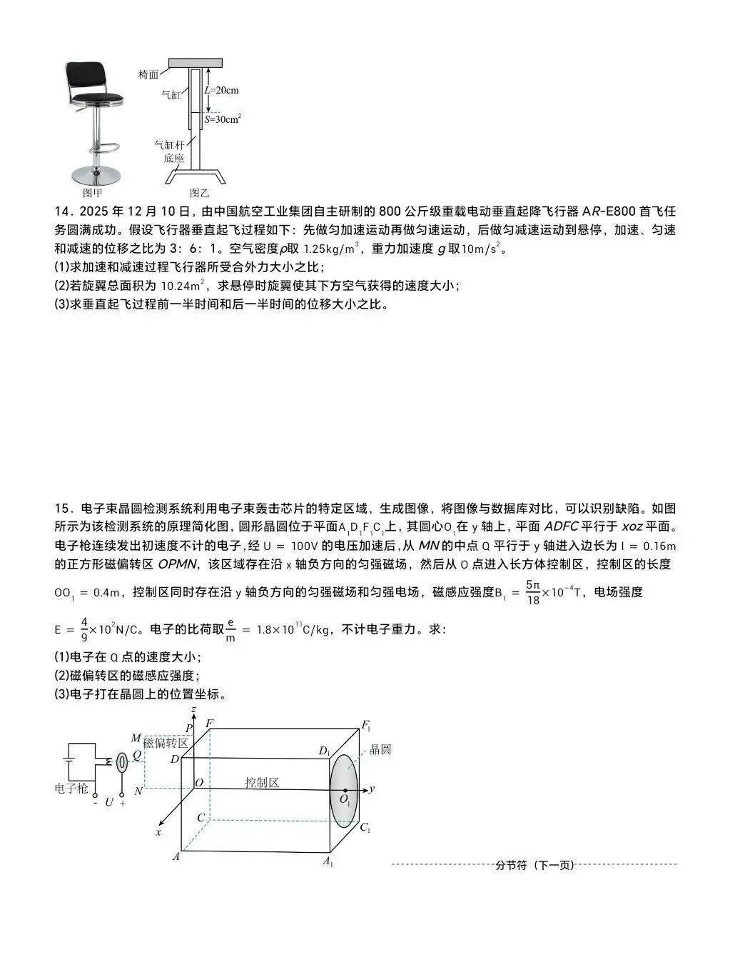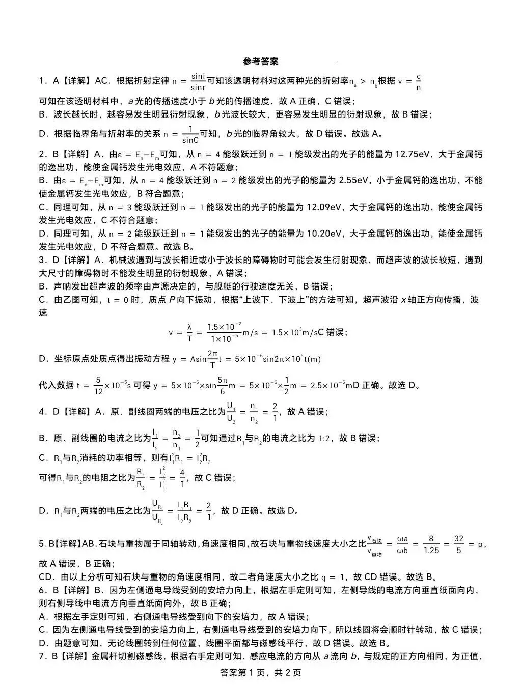 2025年梅州市高三总复习质检试卷物理试卷及参考答案202502广东梅州一模等广东模拟题试卷下载