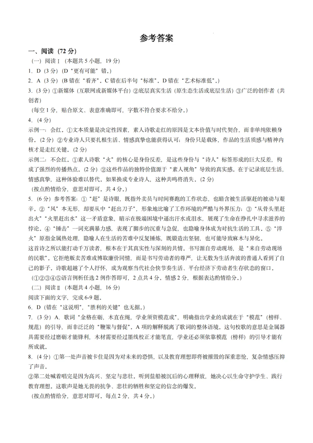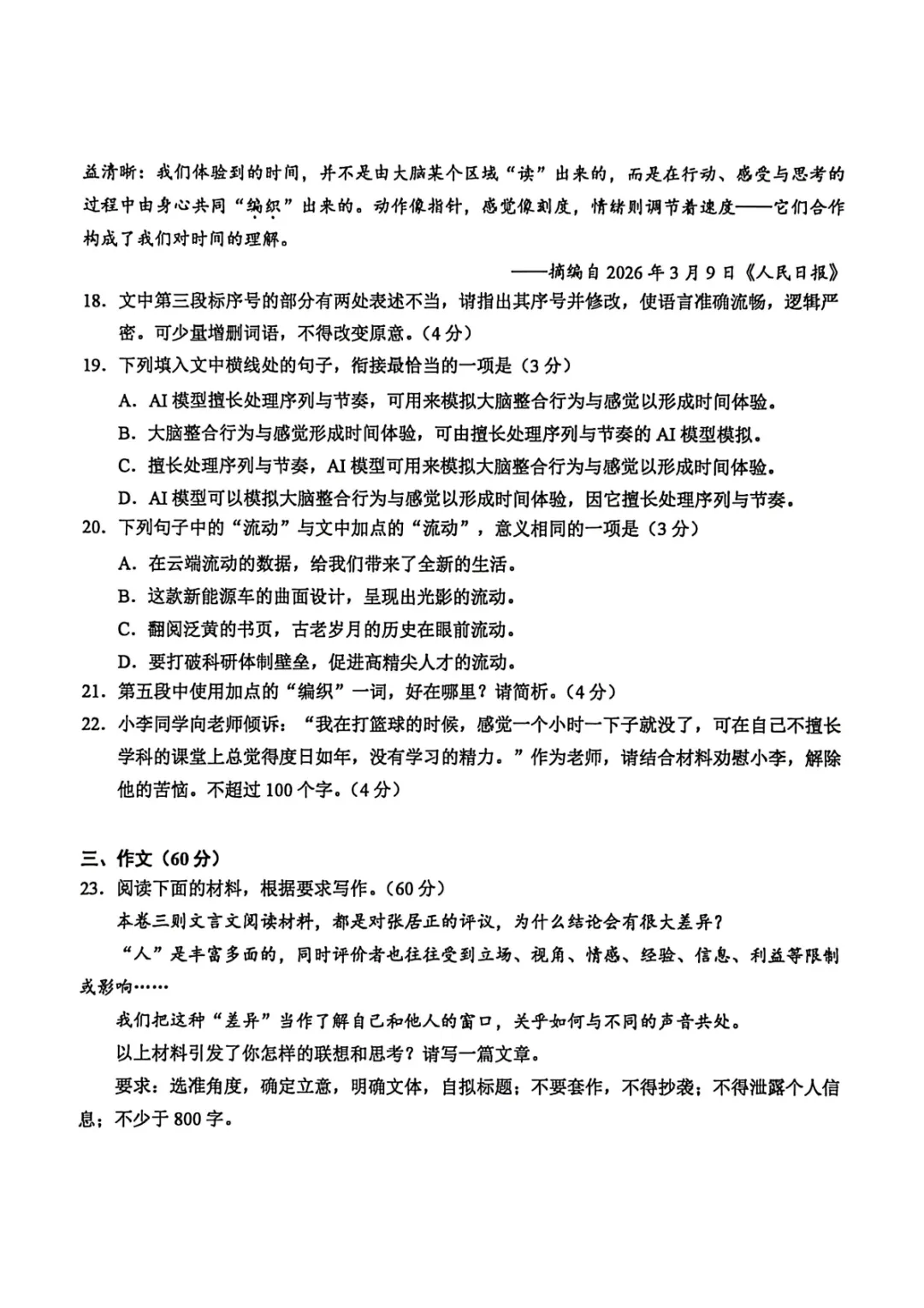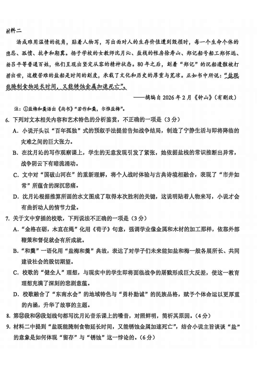 >2026年4月高三绍兴诊断二模语文试卷及答案