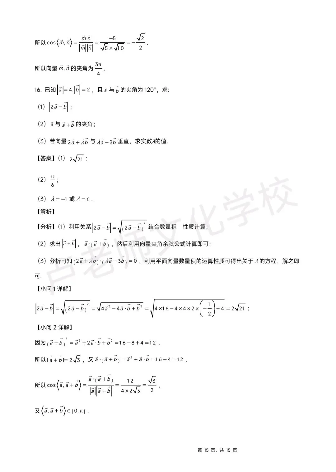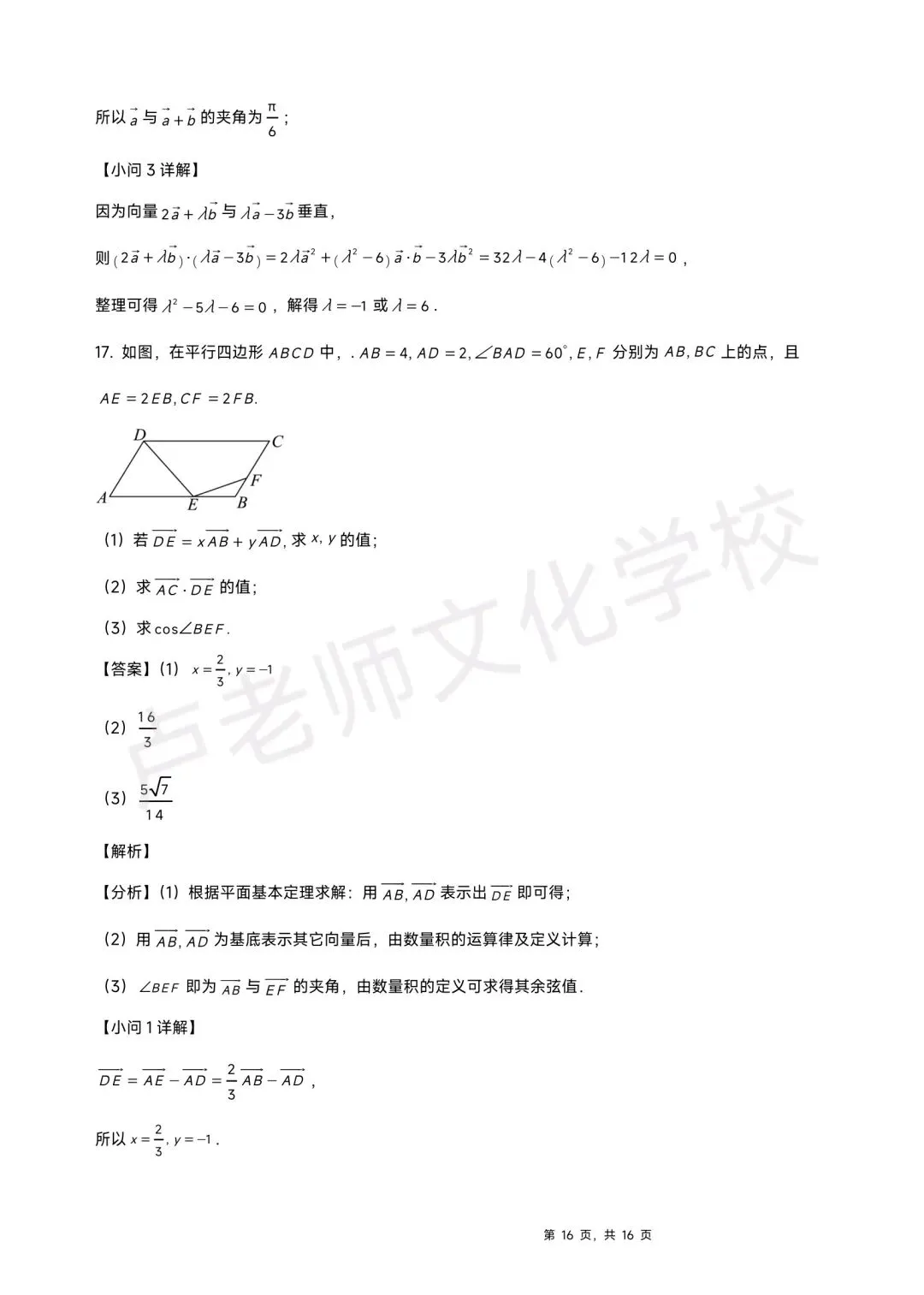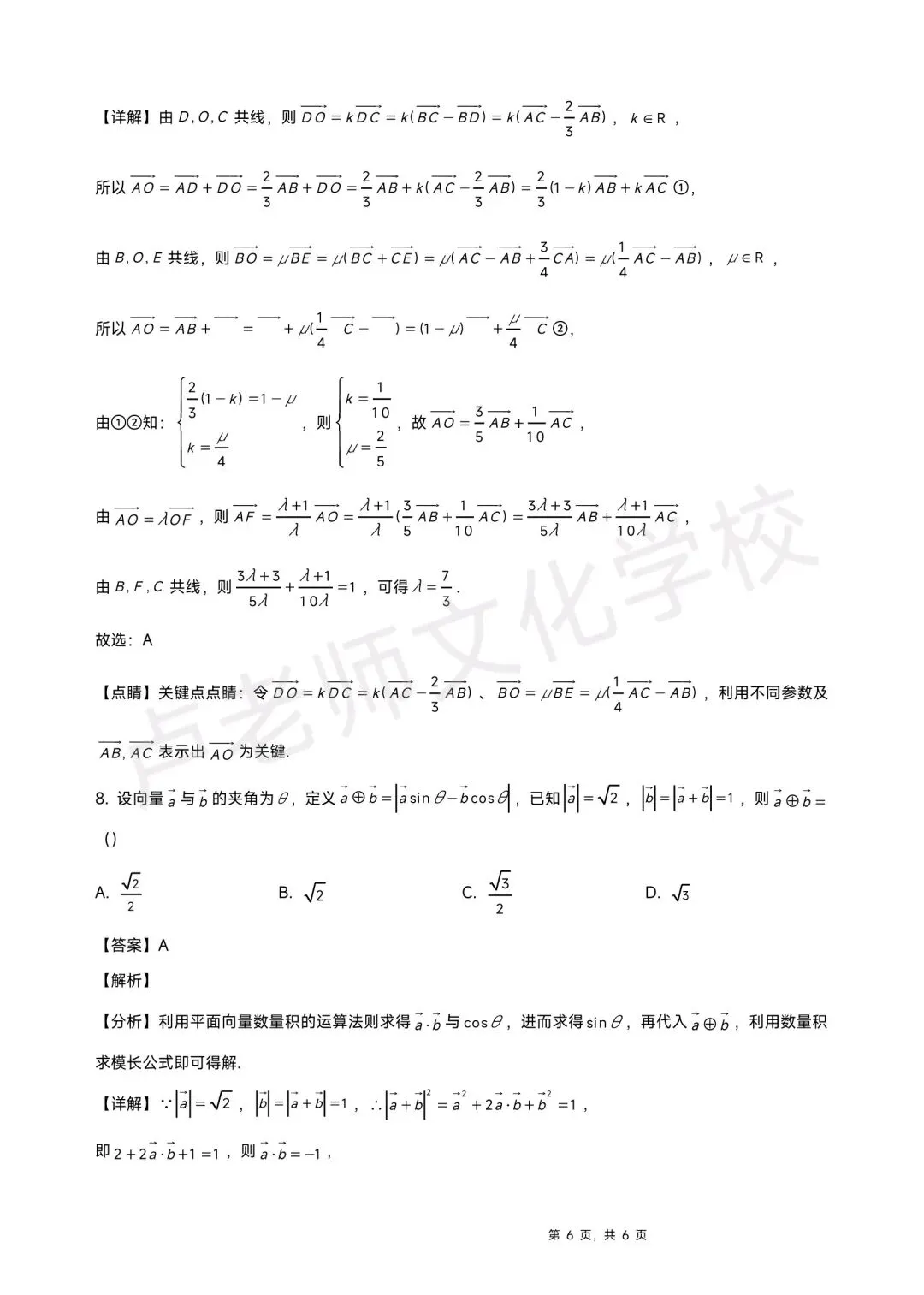 >26年3月哈六中高一数学3月份月考测试试卷+答案(免费下载)