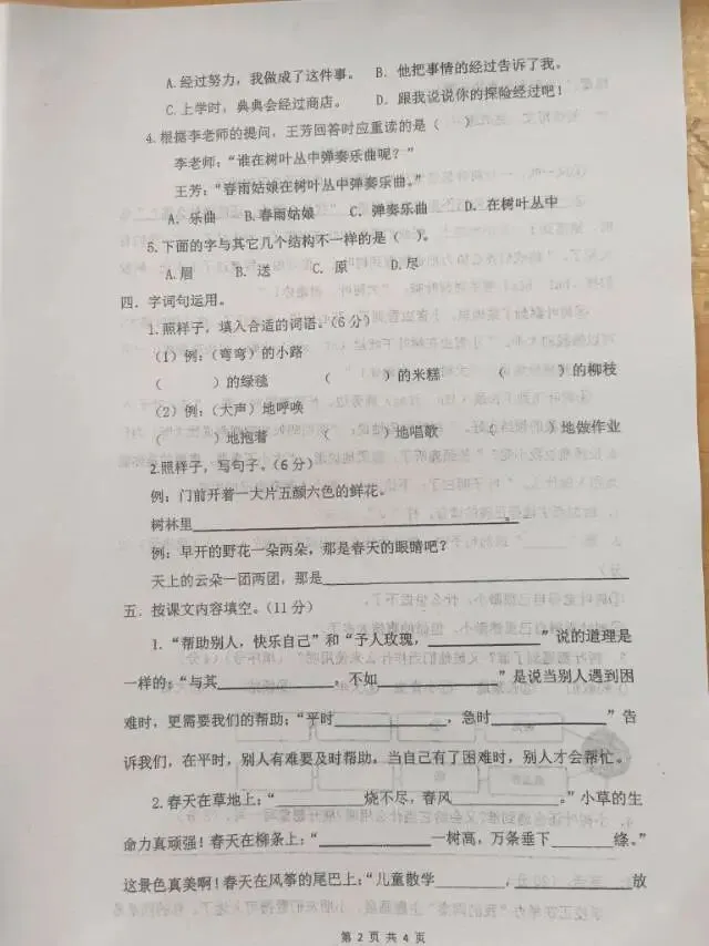郡系期中考试语文试卷来啦