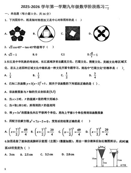 数学 九年级第三次月考试卷.zip