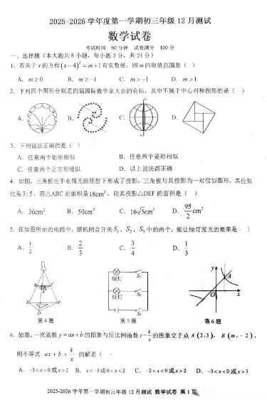 数学 九年级上12月数学月考试卷.zip