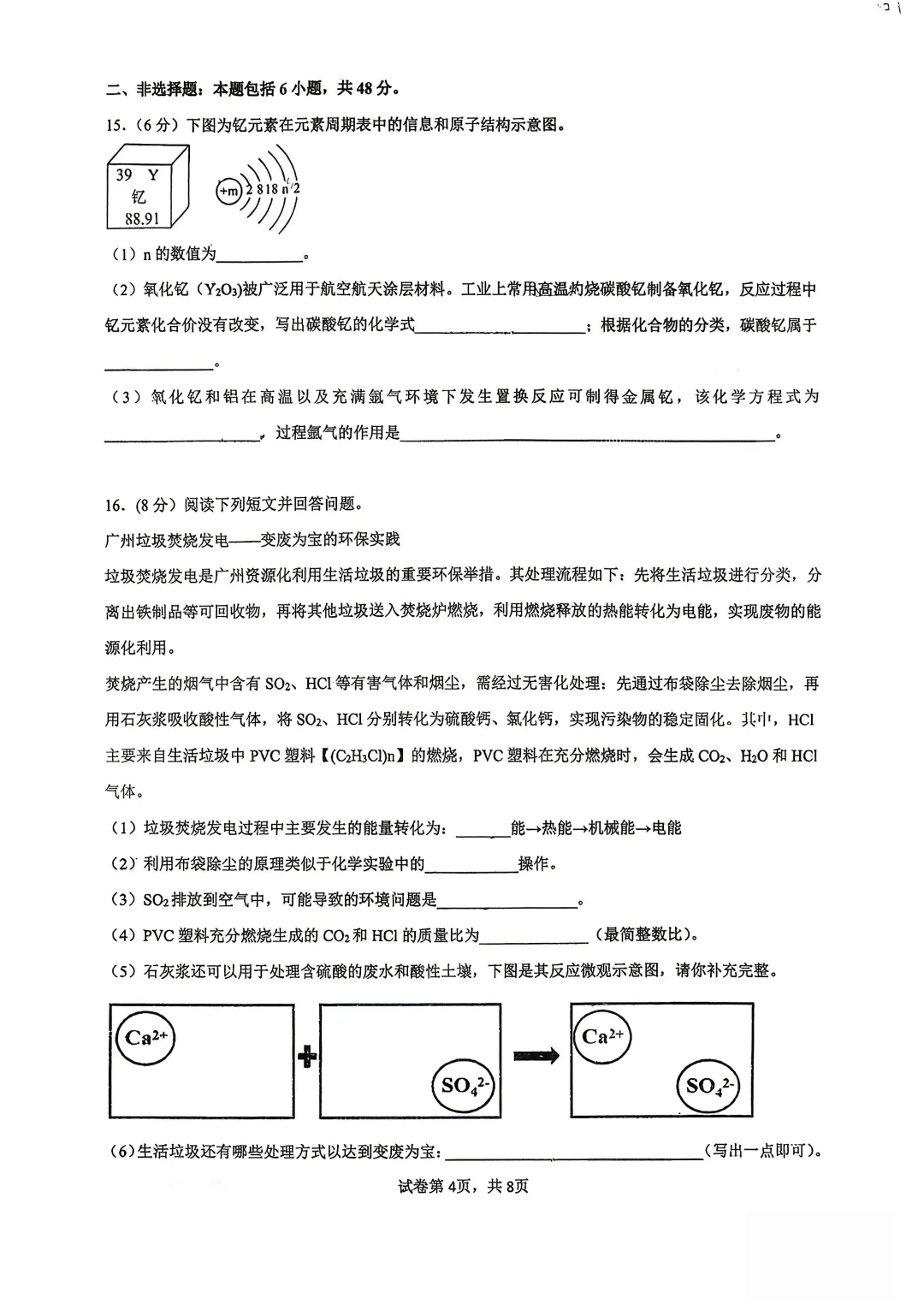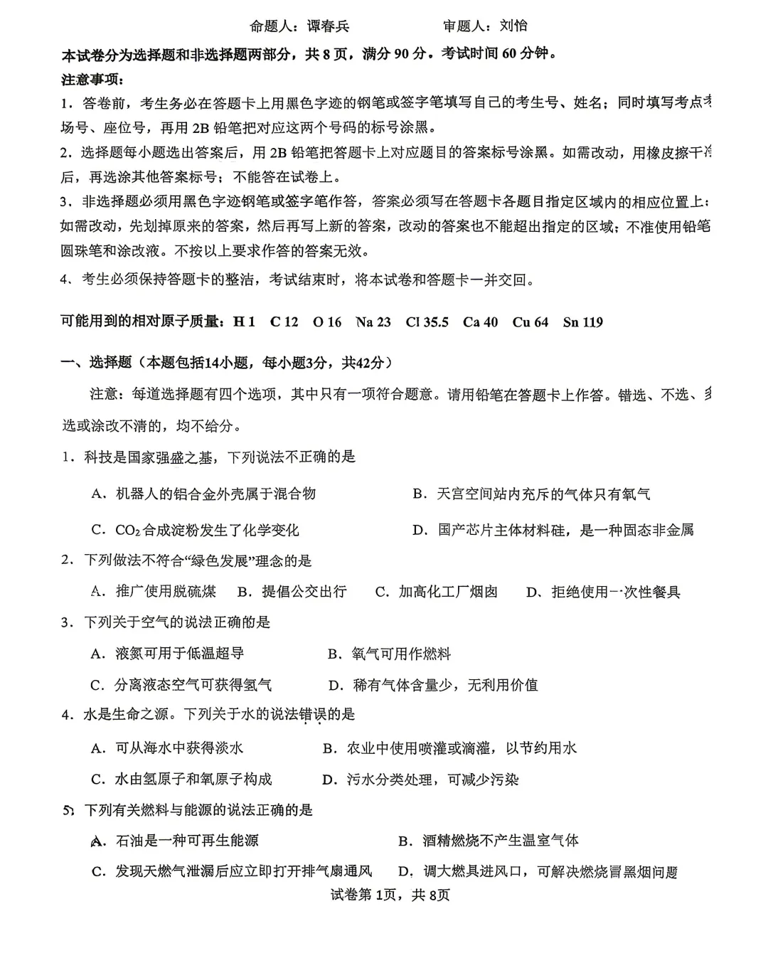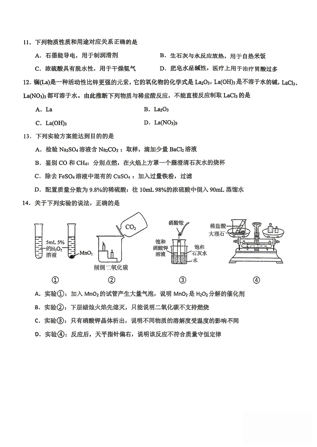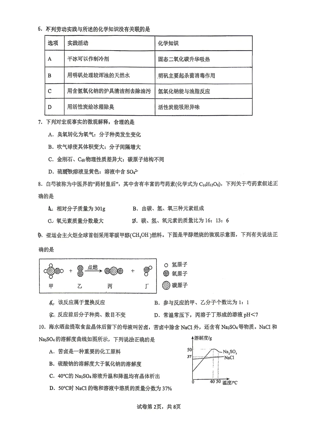 25-26学年广附大联盟初三适应性模拟考试化学试卷
