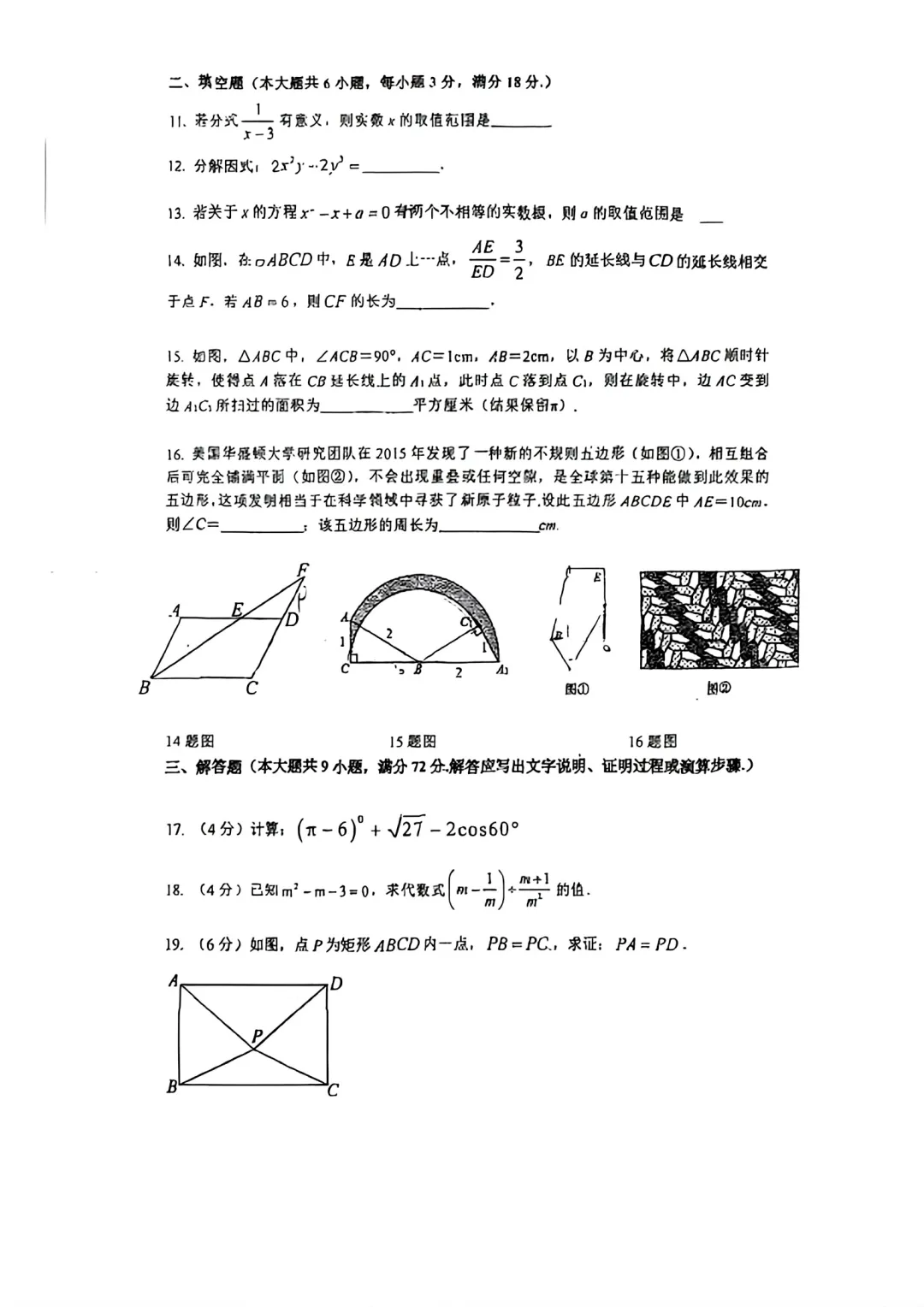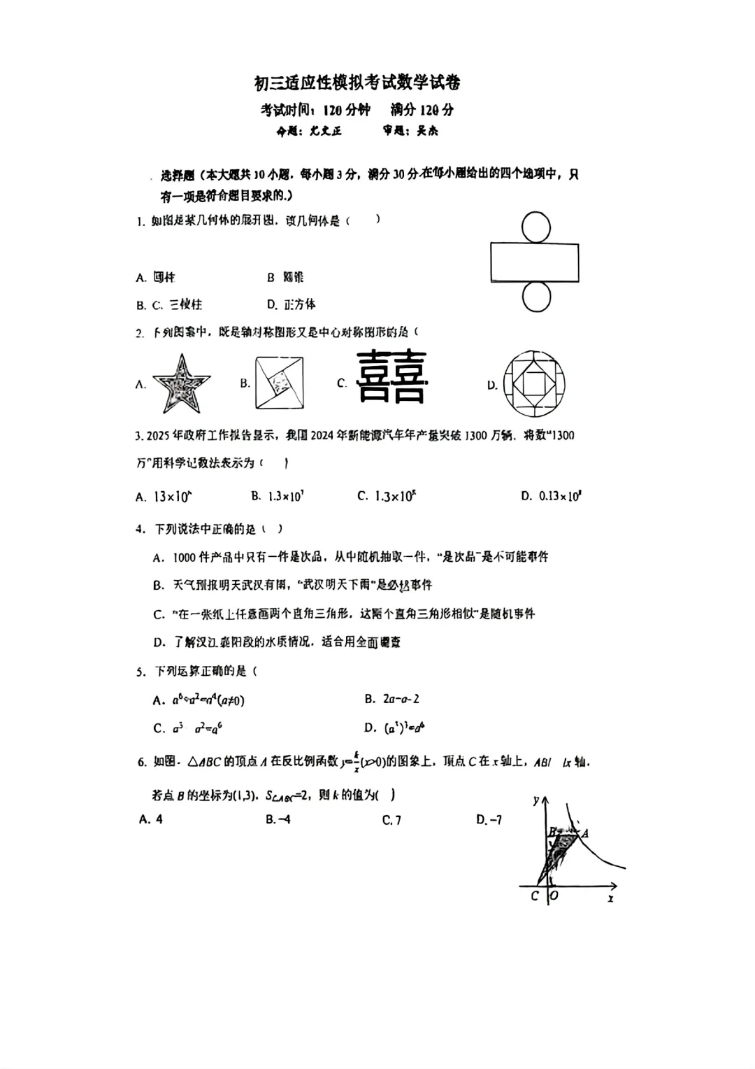 25-26学年广附大联盟初三适应性模拟考试数学试卷