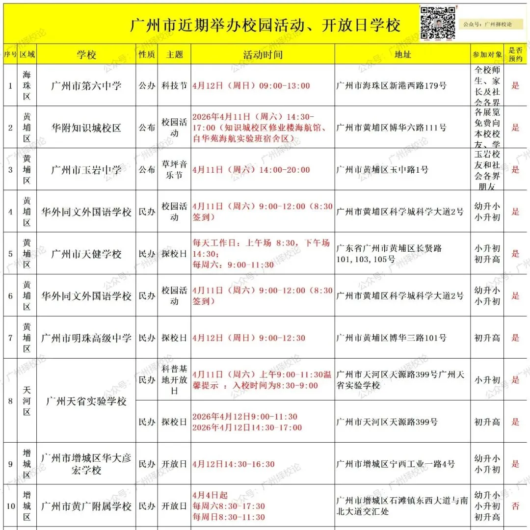 本周举办校园活动、开放日学校!华附、六中、玉岩、天省、黄广附、天健、明珠、华外、华大...