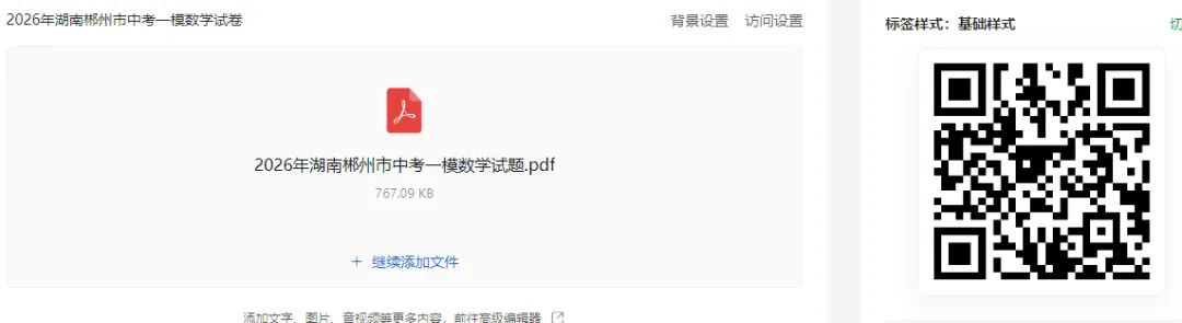>2026年湖南省郴州市中考一模数学试卷