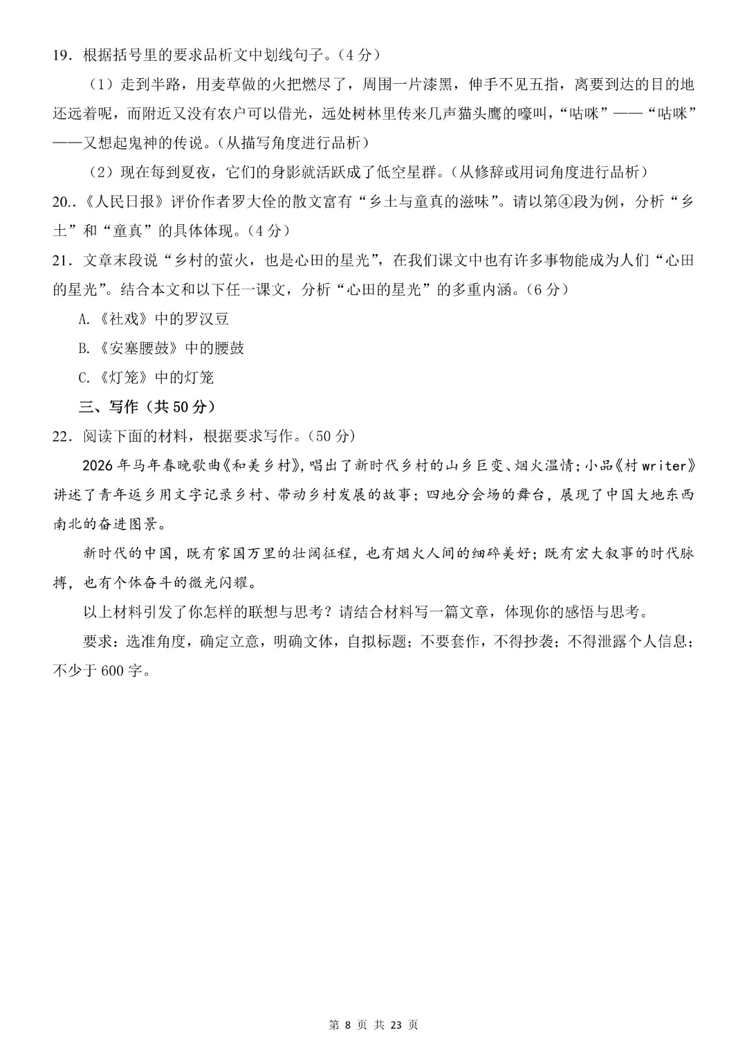 26年八年级下册语文《第一次月考试卷附解析》共2套附解析|高清电子版可打印