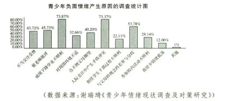 以下为青少年负面情绪产生原因的调查统计,原调查问卷为多项选择题。