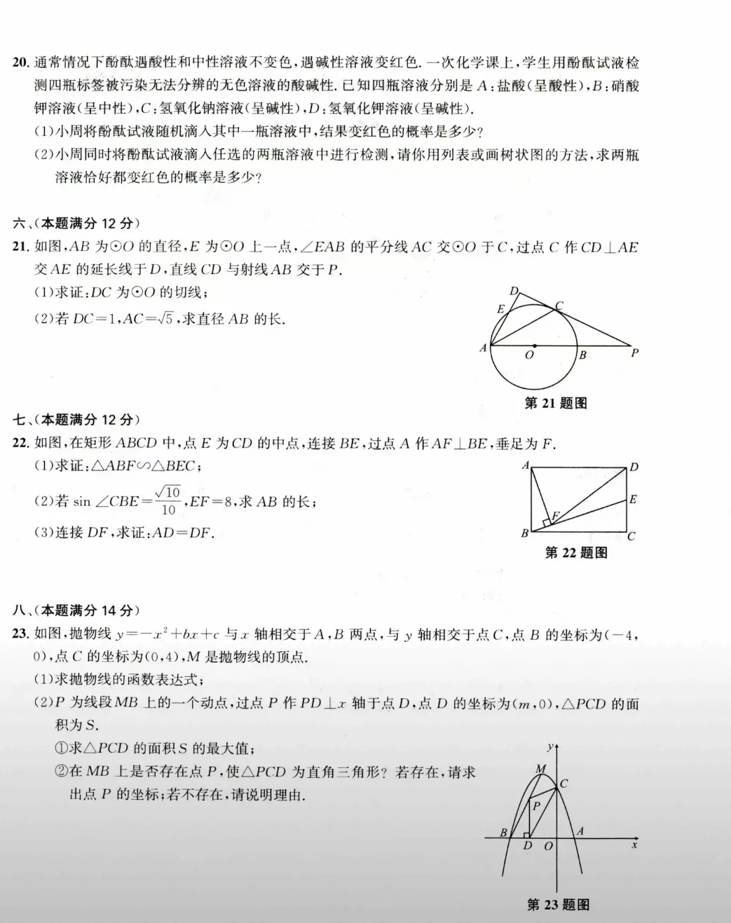 九年级数学中考模拟练习卷(含答案)