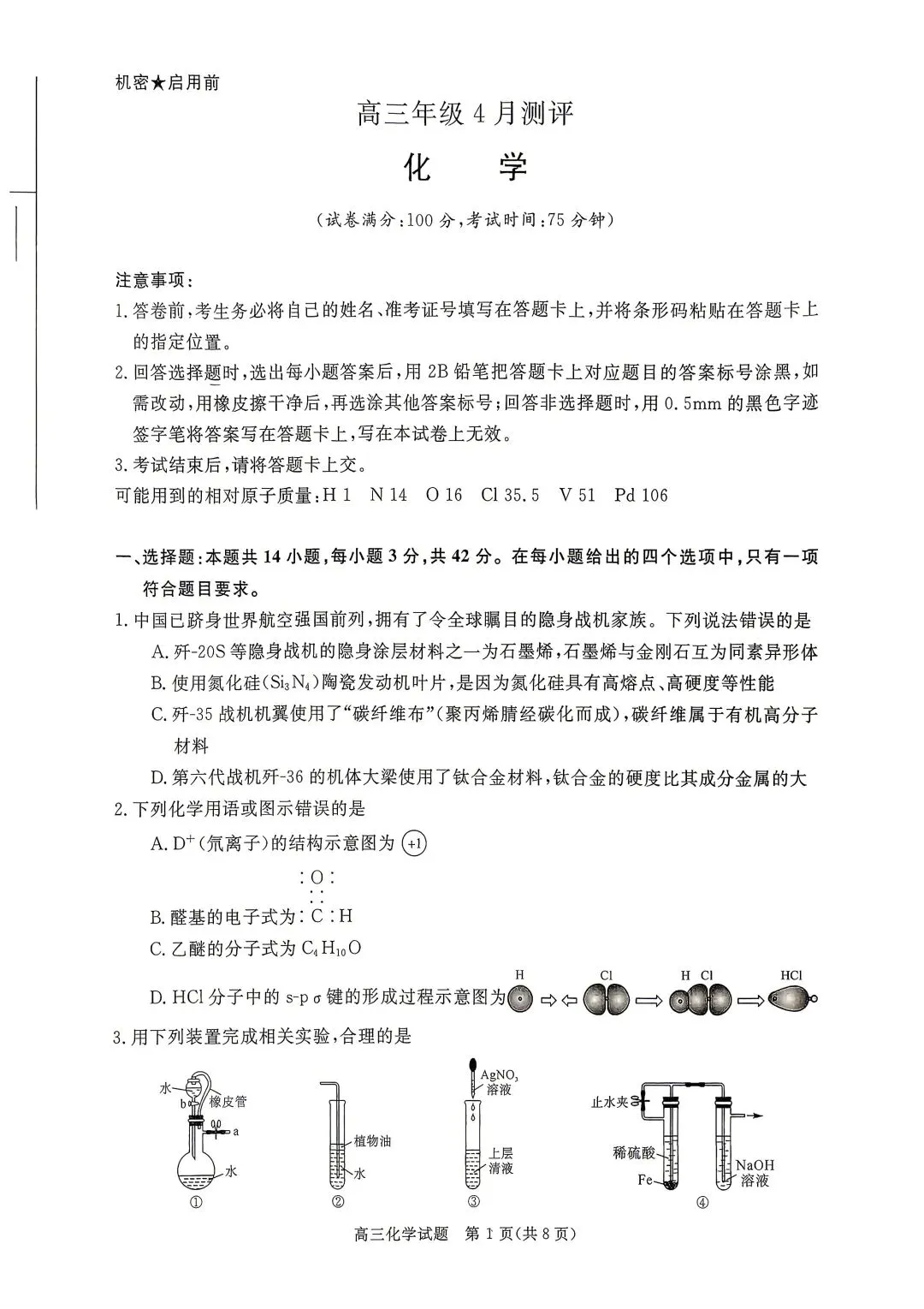 四月份新未来试卷分享