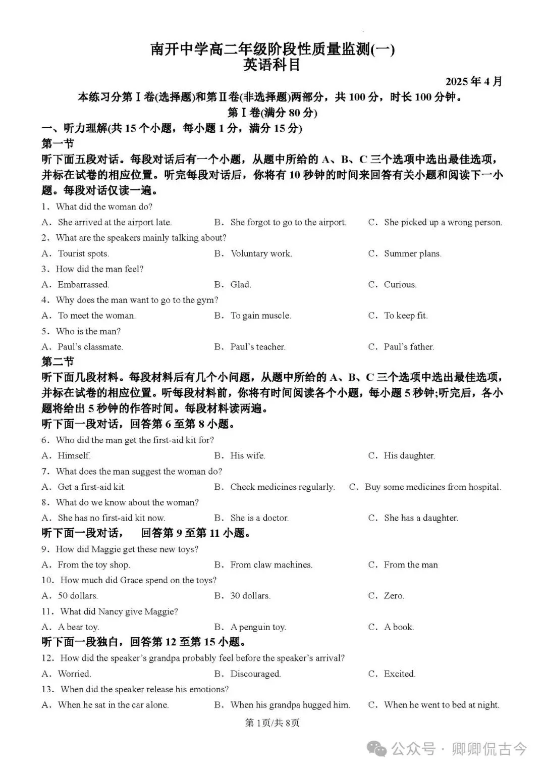 【高考英语听力在线测试】高考听力机考模拟试题大全(持续更新中)