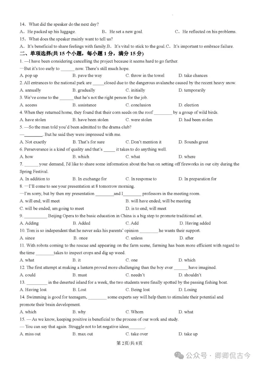 【目录5】高中英语单选题大全(持续更新中~)