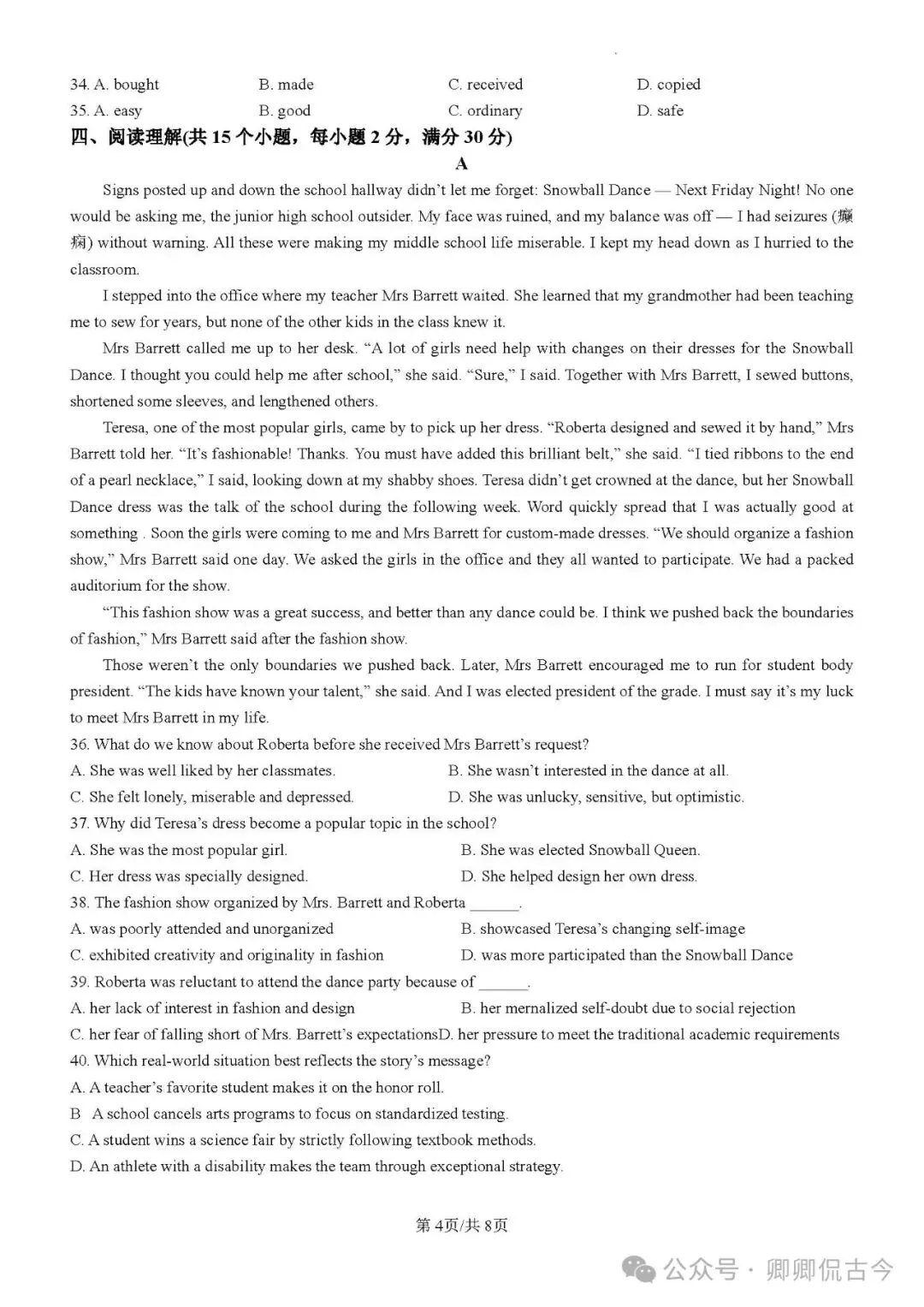 试卷分享,嘉兴二模英语出炉+C.D阅读分析