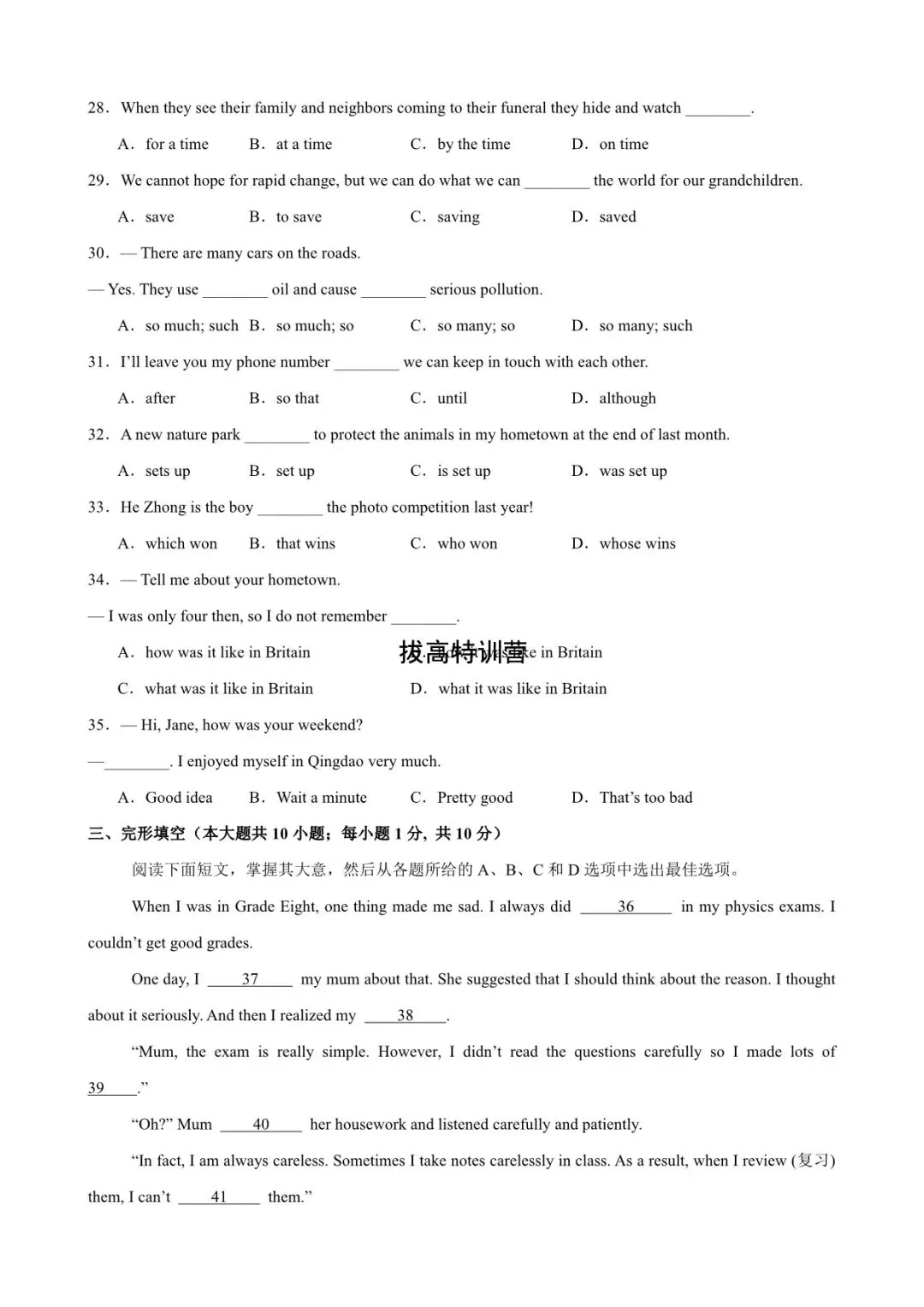 2026年中考英语第一次模拟试卷(天津专用)含答案解析,含听力,电子版可下载打印!