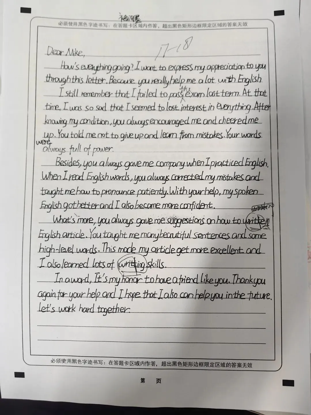 47中学一模试卷作文:感谢信!