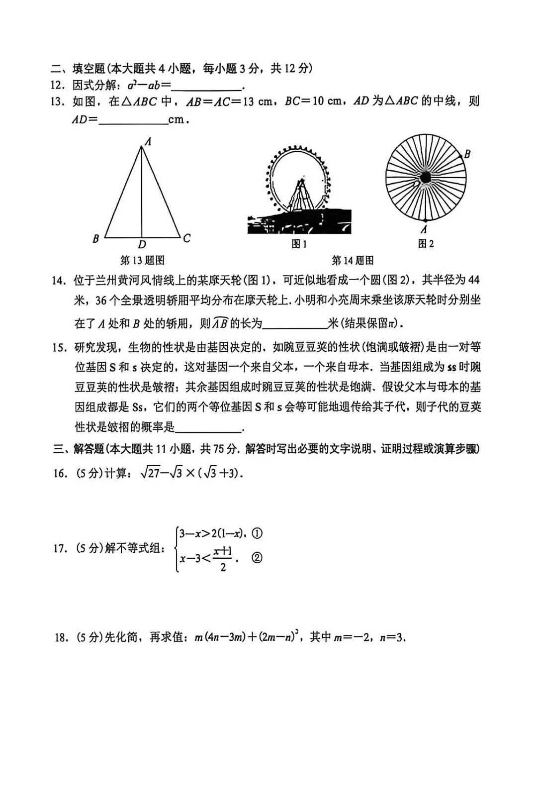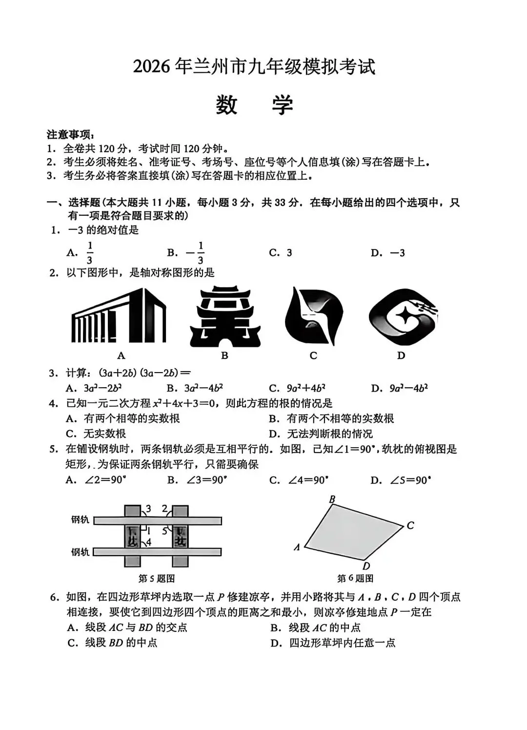 2026兰州九年级数学一诊试卷(含解析)