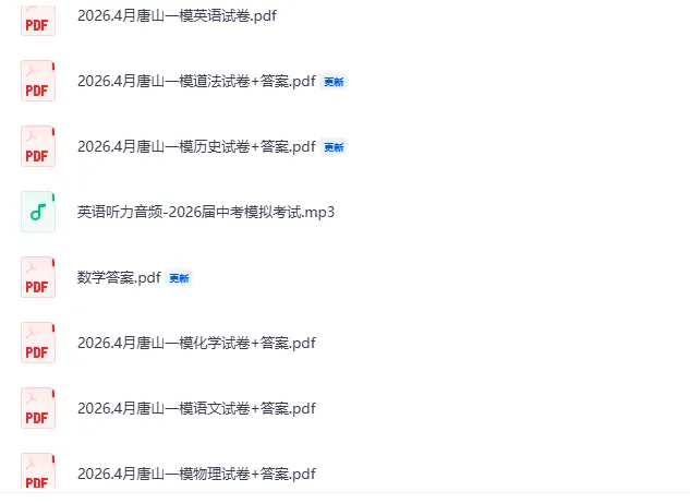 >2026.4月唐山市中考一模全科试卷(含答案和听力