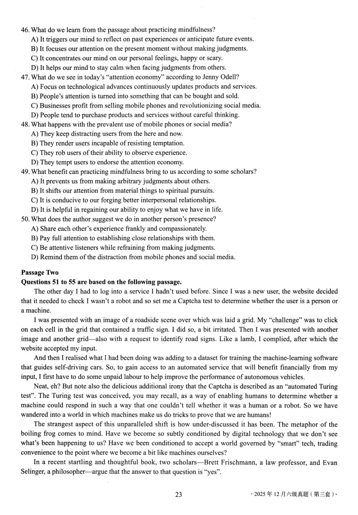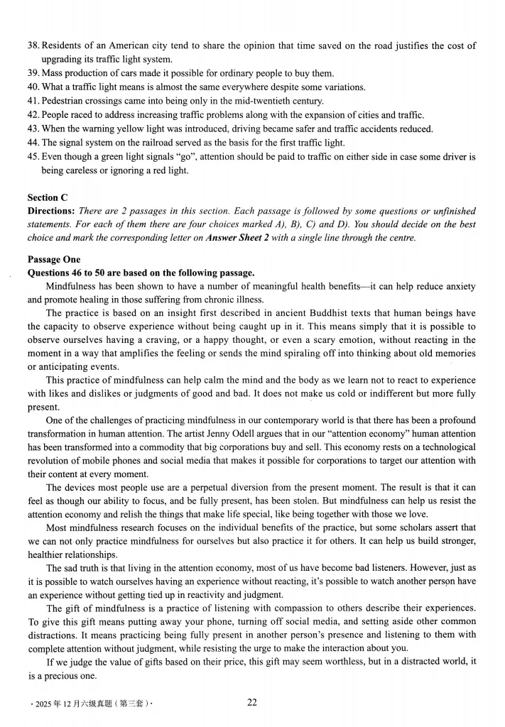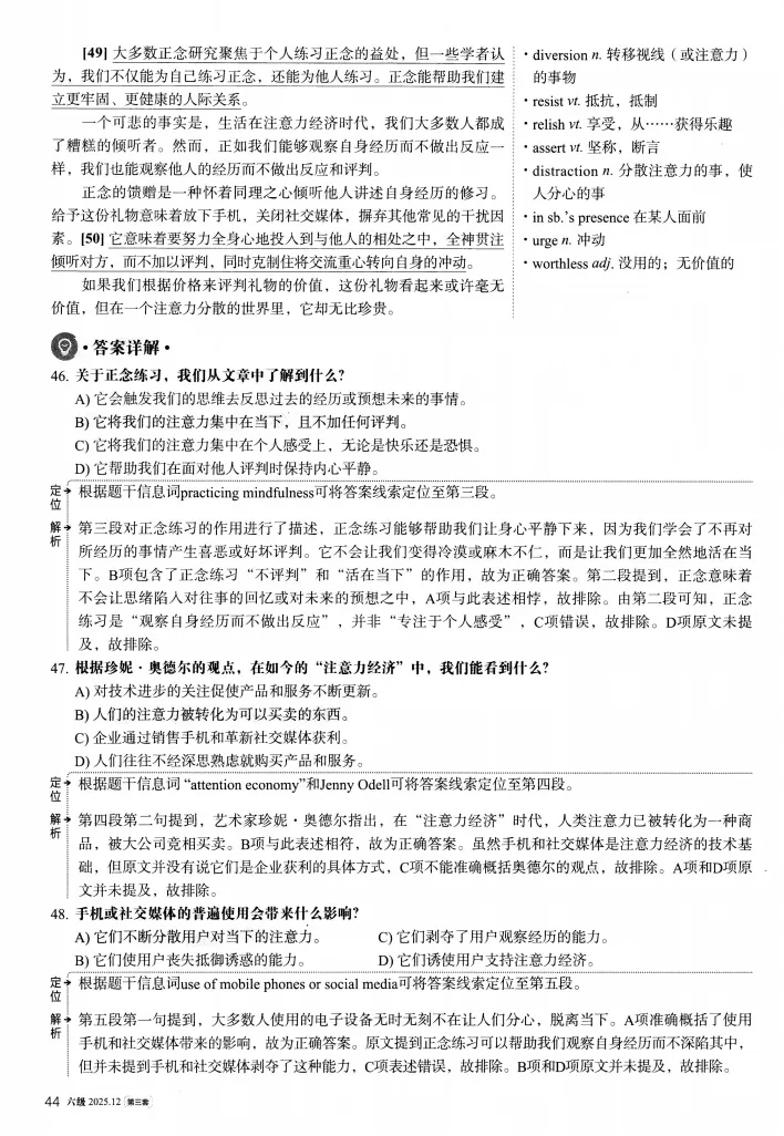 【资源名称】:2025年12月英语六级考试真题及答案解析(第3套)