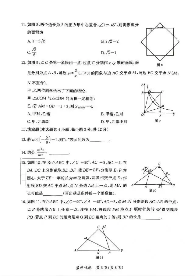 2026年唐山初三数学一模试卷