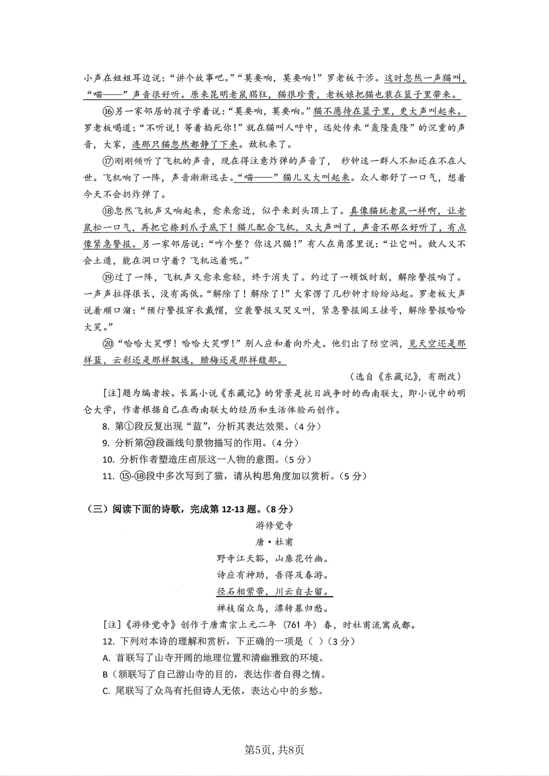 2026年宝山区高三二模语文试卷(答案版)