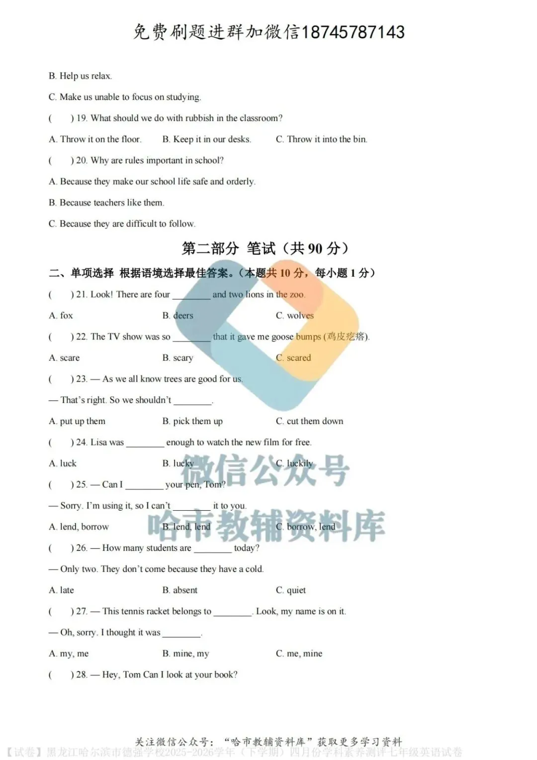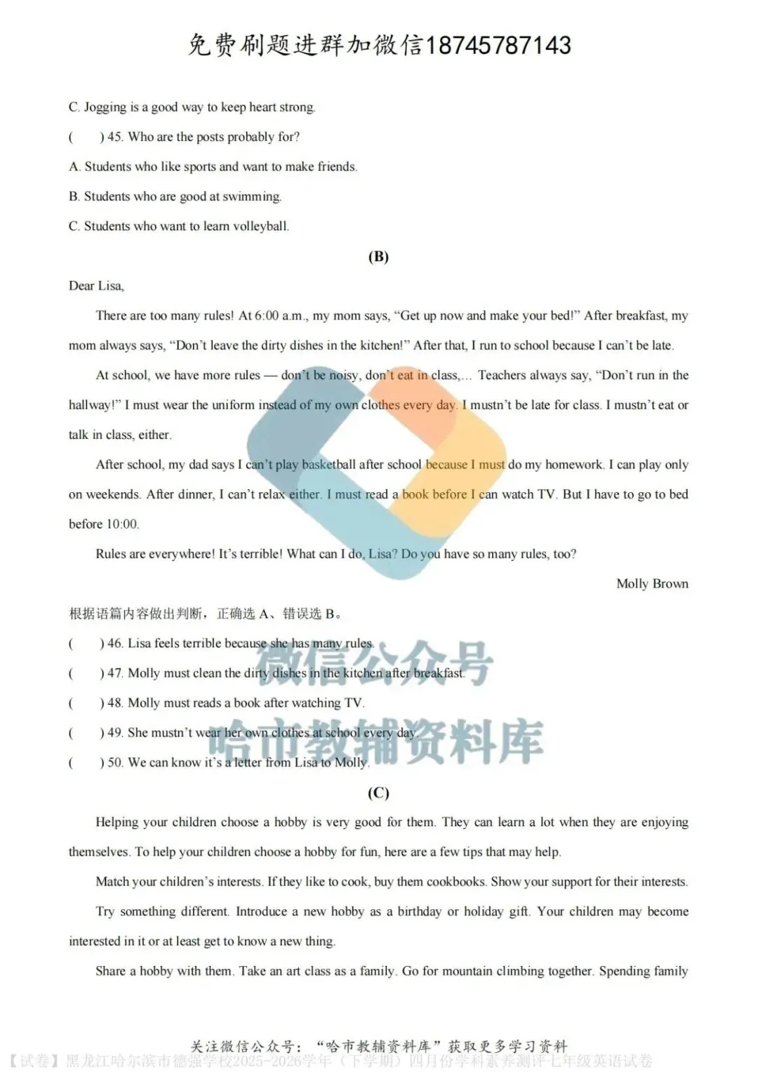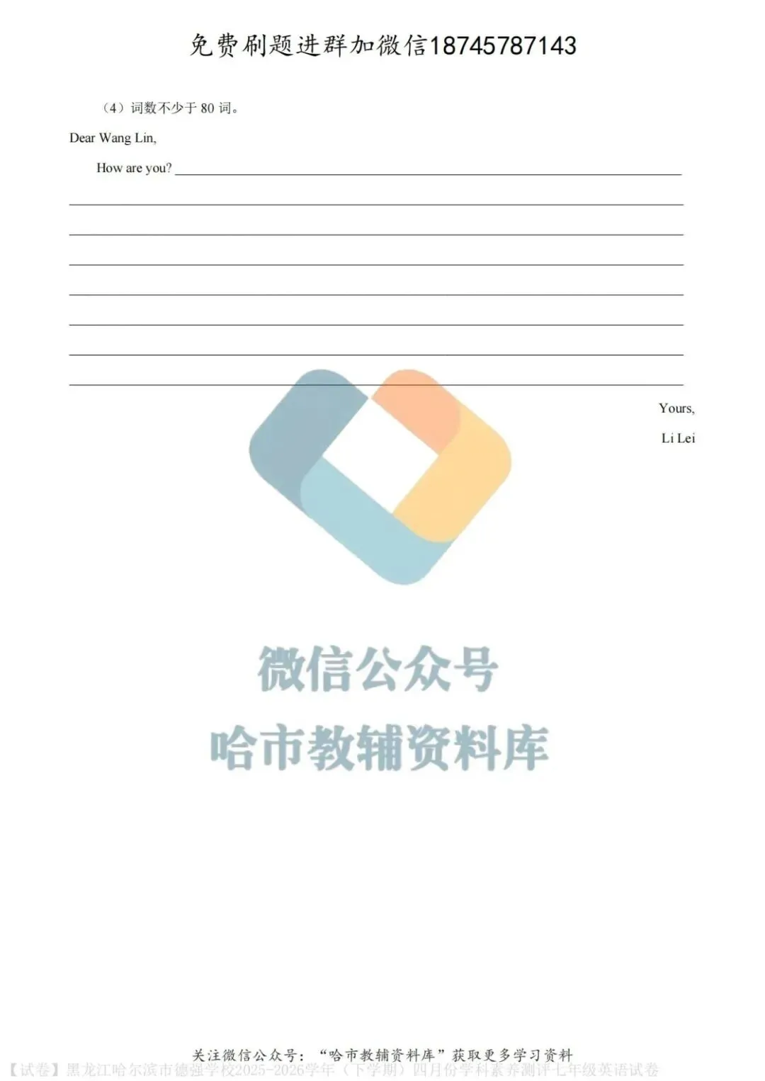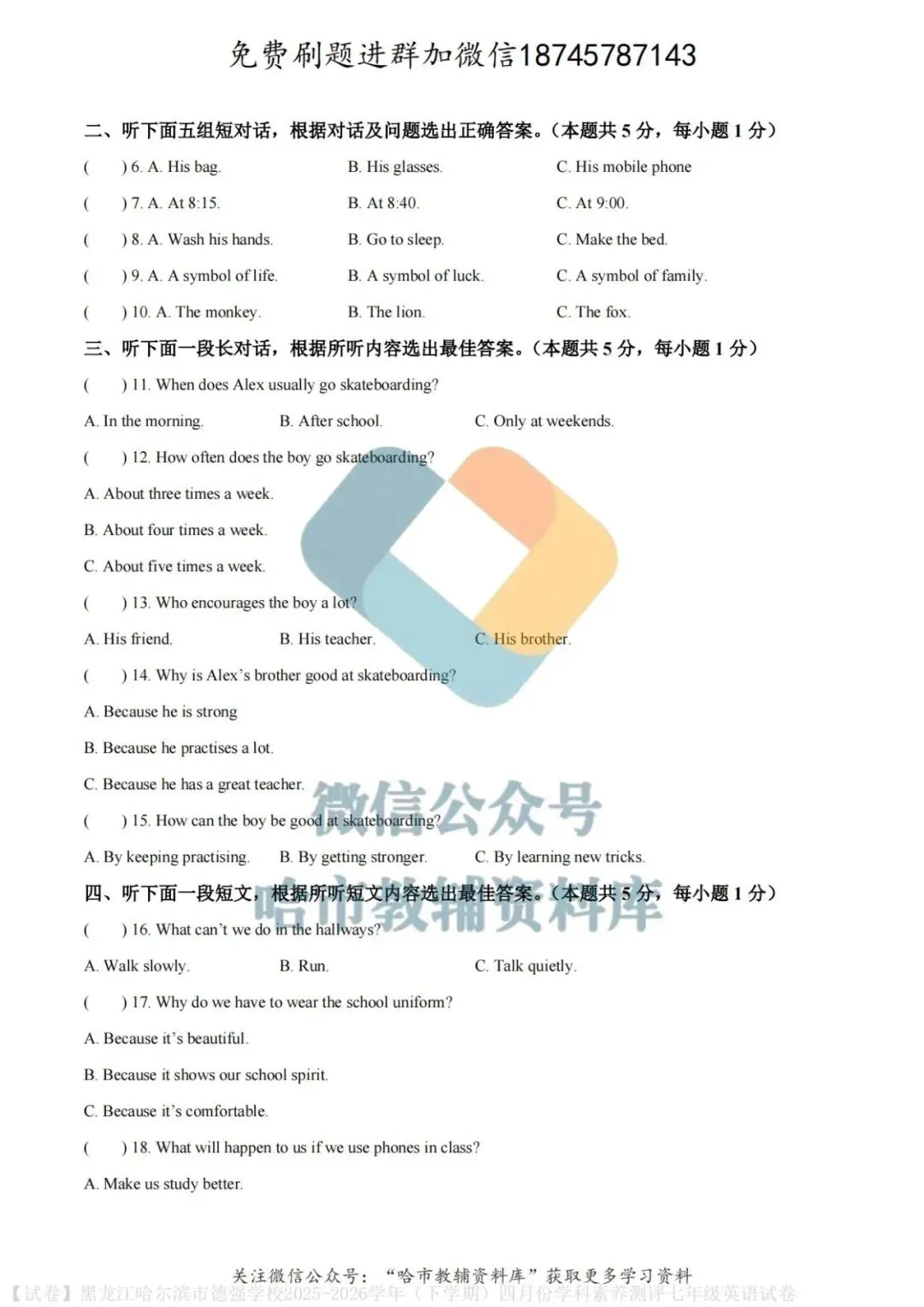 弘文资源群每天免费提供名校月考题新题型,进群添加微信!