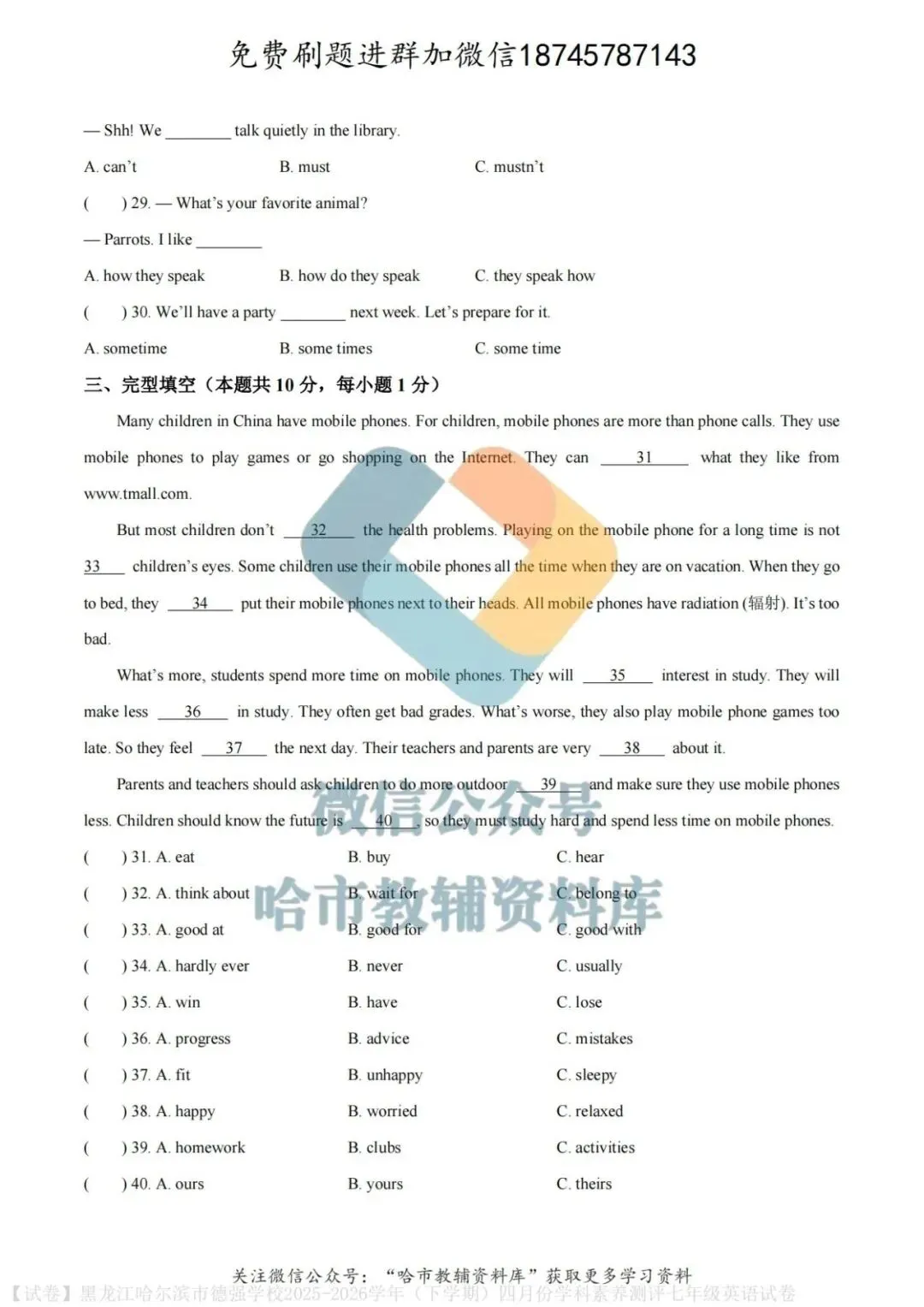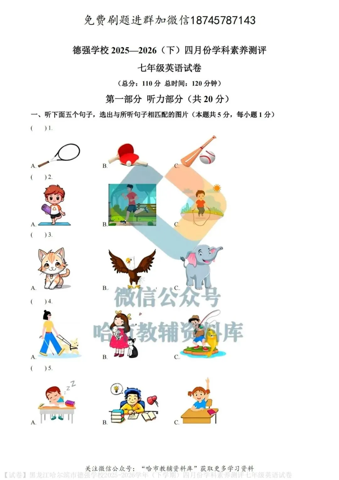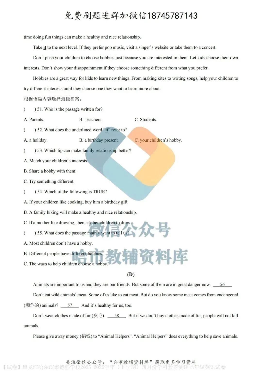 弘文资源群每天免费提供名校月考题新题型,进群添加微信!