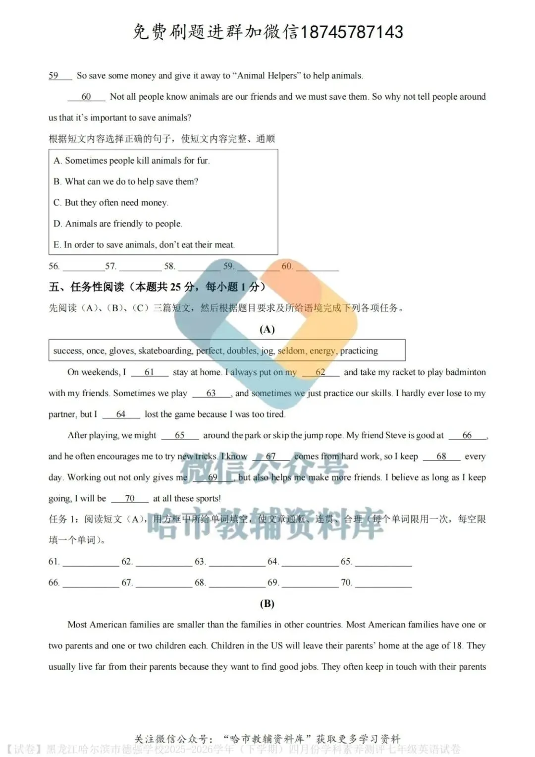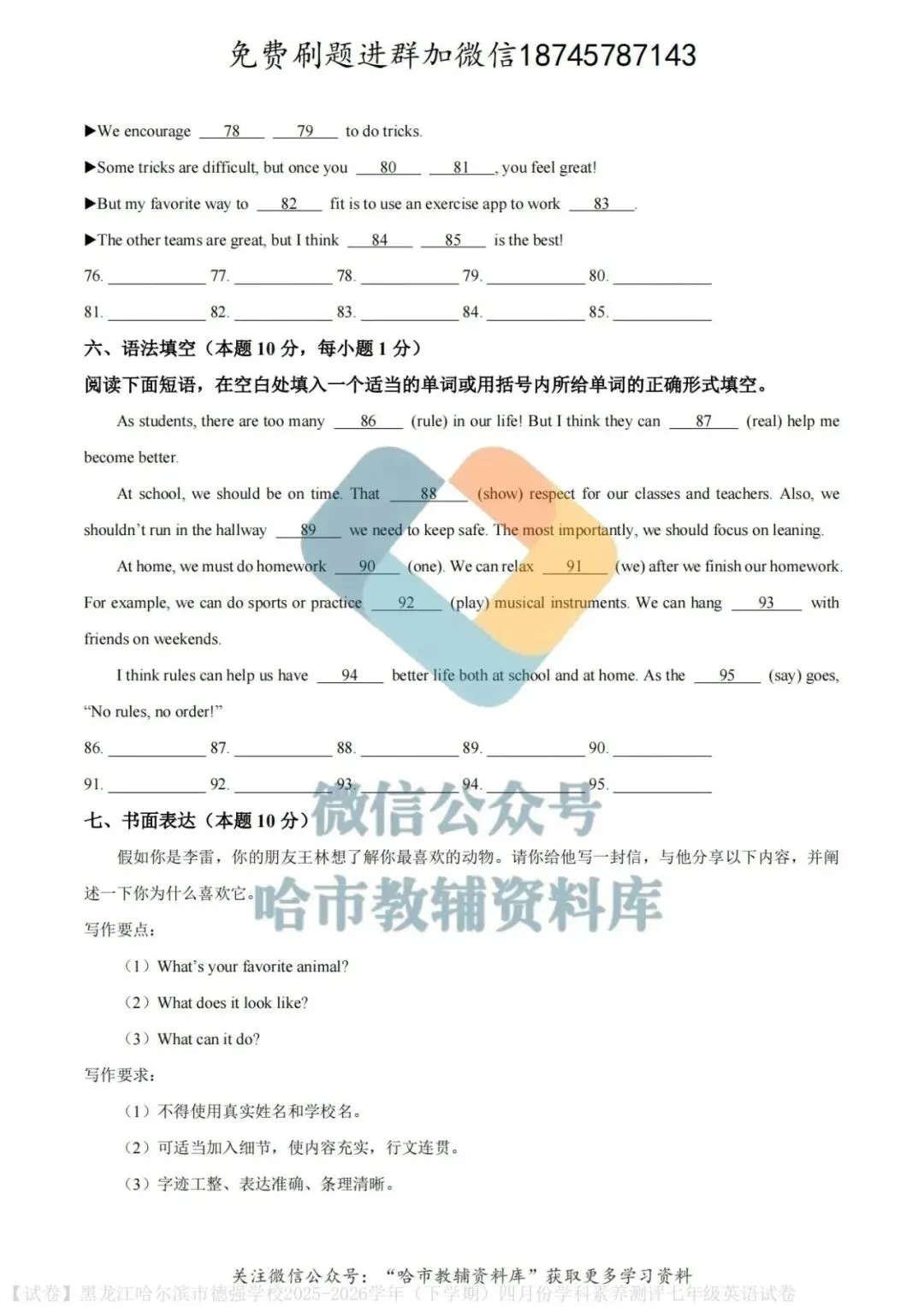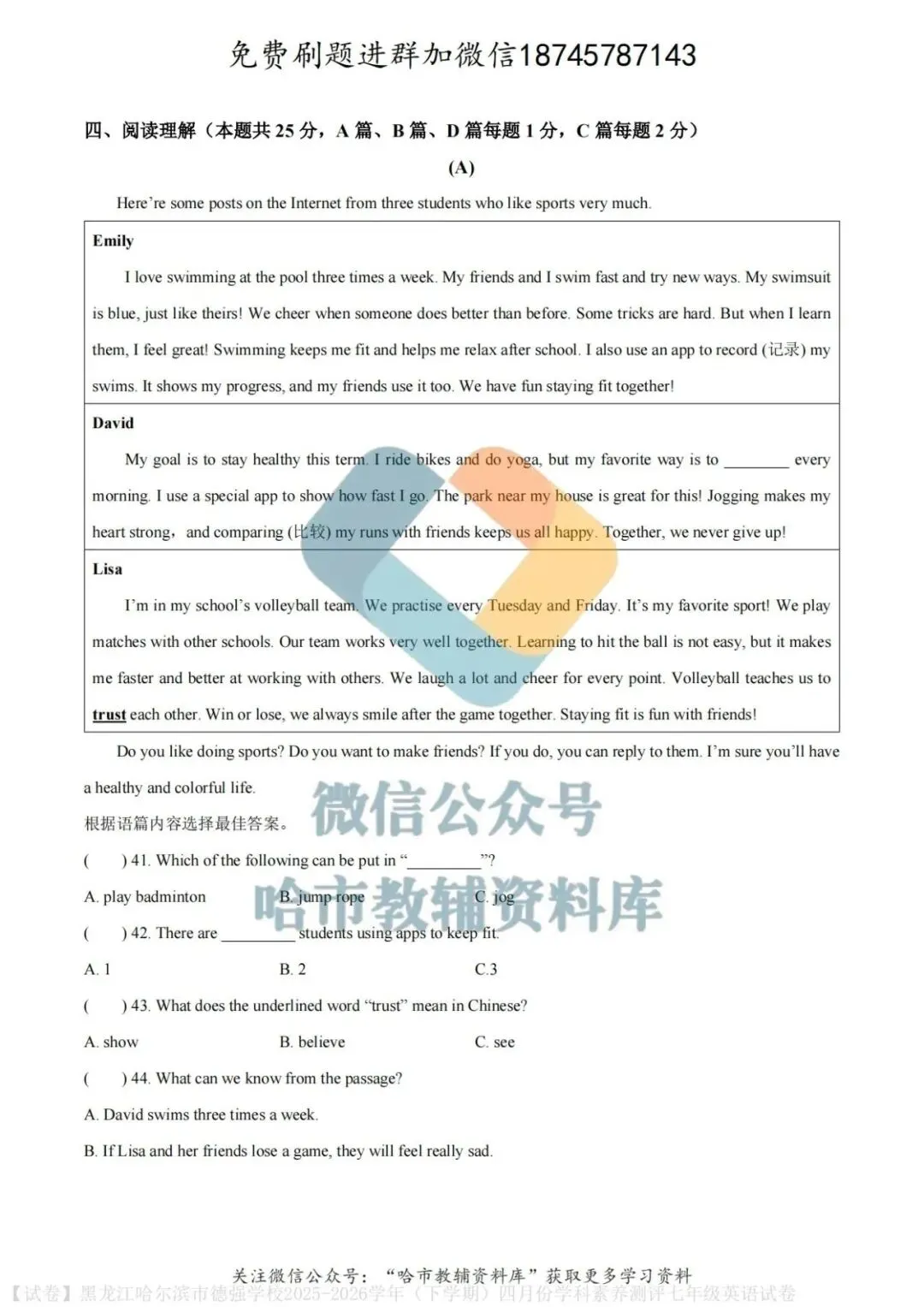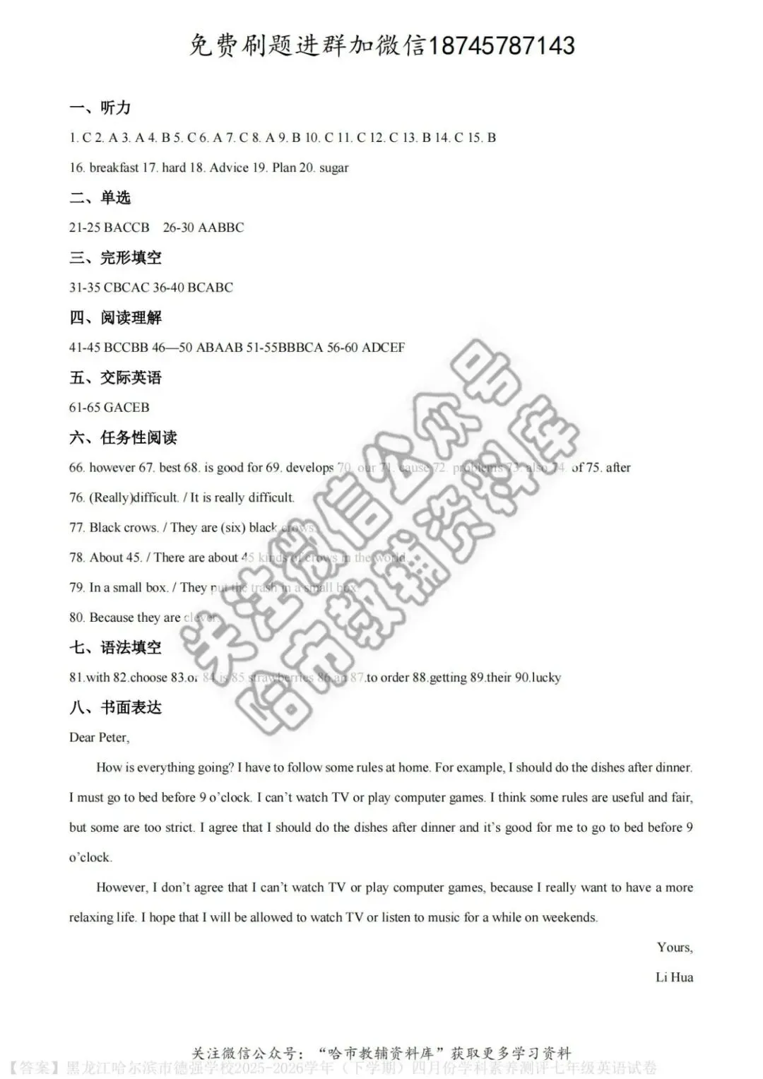 弘文资源群每天免费提供名校月考题新题型,进群添加微信!