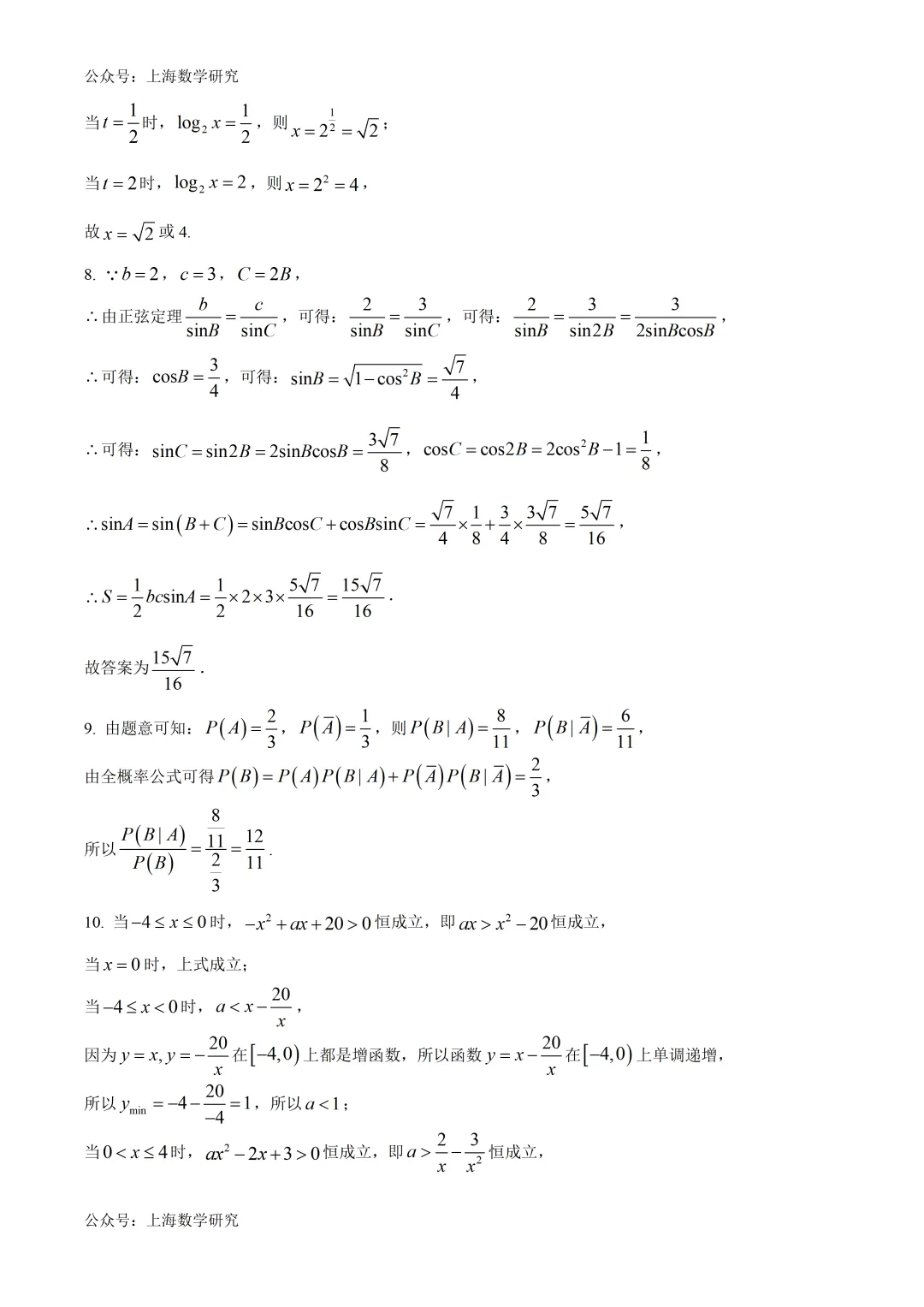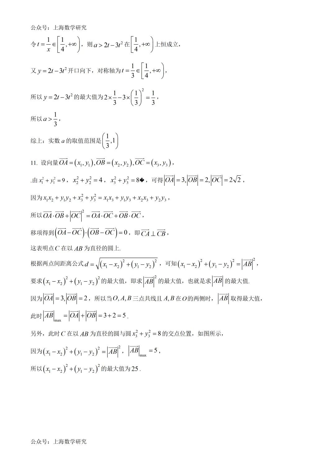 >上海市大同中学高三数学4月练习试卷及答案(2026.4)