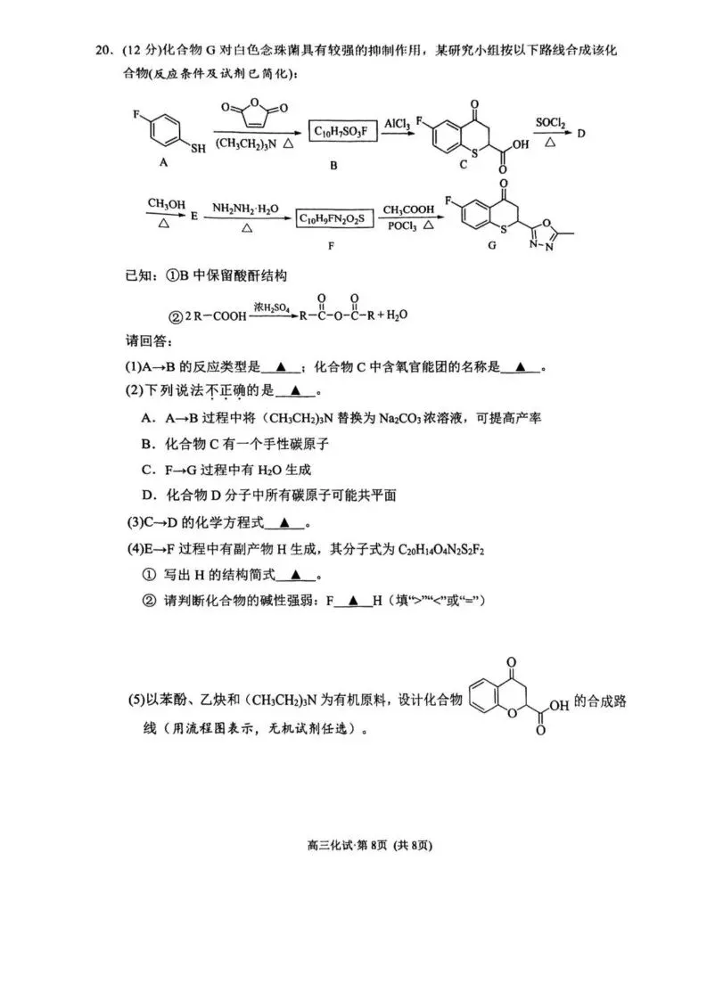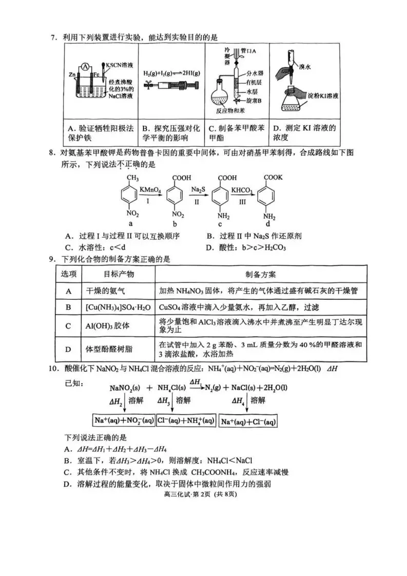 >【高一、高二、高三最新月考试卷】2026届杭州二模化学试卷+答案