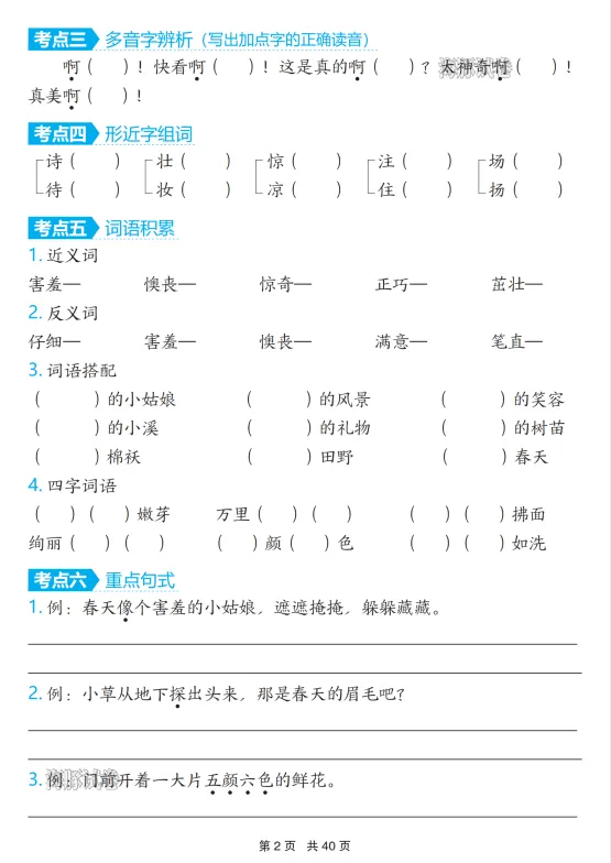 【海豚试卷】二年级(下)语文1-8单元考点通关|电子版可打印